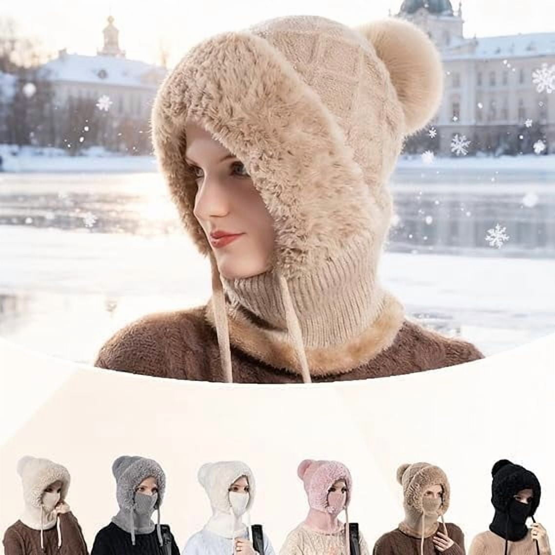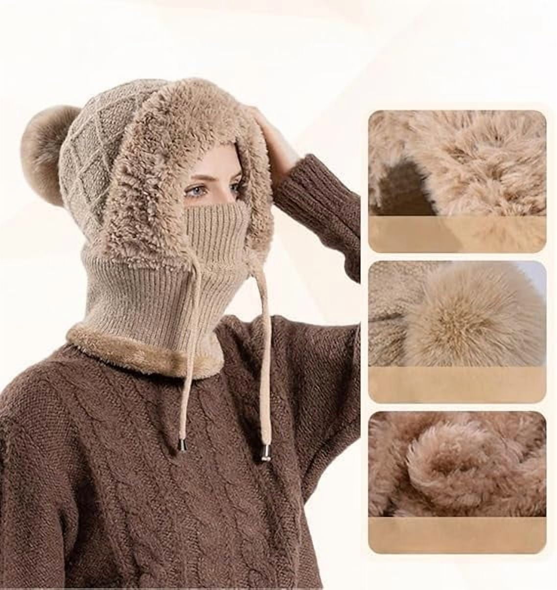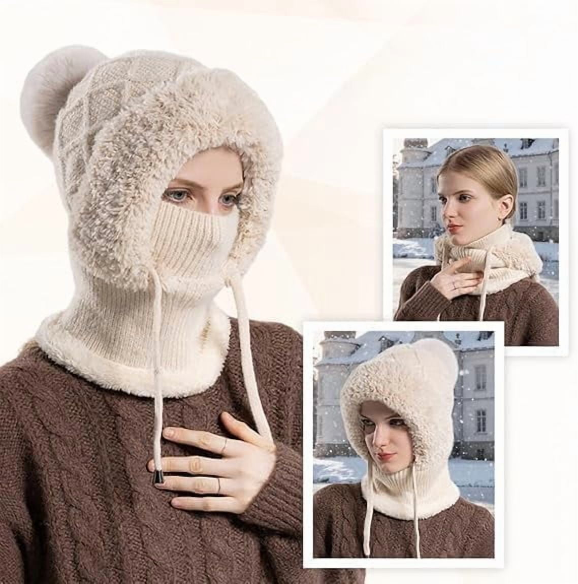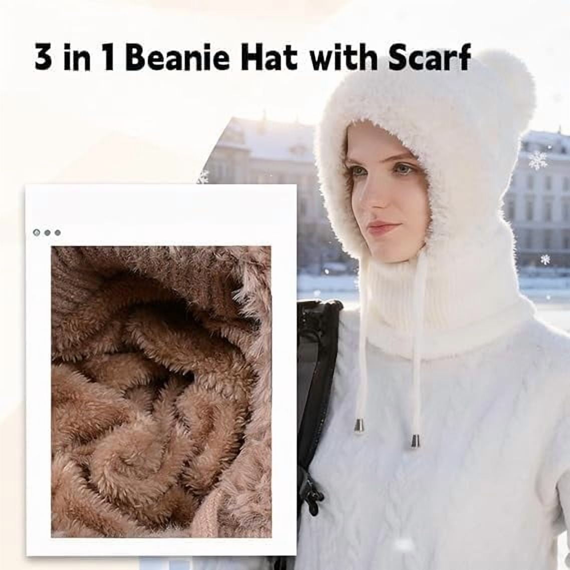 2026 Upgrade 3 in 1 Beanie Hat for Women | Windproof Knitted Beanie with Scarf and Mask, Winter Warm Balaclava for Fall & Winter