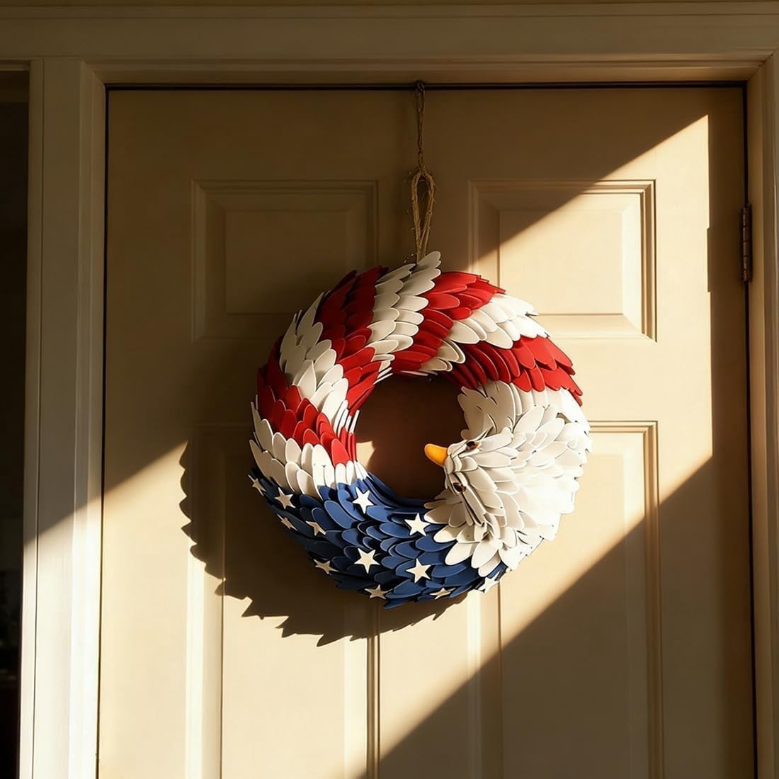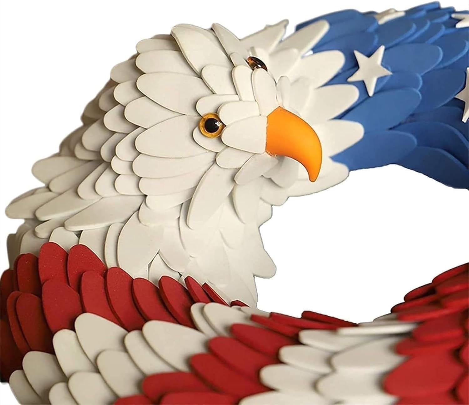 🎁【Patriotic Pride】Show your American spirit with this handcrafted eagle wreath. Bold red, white, and blue colors are perfect for July 4th and Memorial Day. 🎁【Stunning Design】Features a majestic eagle with American flag accents. Crafted from durable wood, this unique piece creates a bold statement on any door. 🎁【Weather Resistant】Built with high-quality materials to withstand the elements. Vibrant colors stay bright year-round, perfect for outdoor porch display. 🎁【Versatile Decor】Ideal for front doors, walls, or fences. A standout decoration for Labor Day, Veterans Day, or everyday patriotic displays at home. 🎁【Perfect Gift】A thoughtful gift for veterans and housewarmings. This impressive design embodies national pride, making it a cherished keepsake for years.