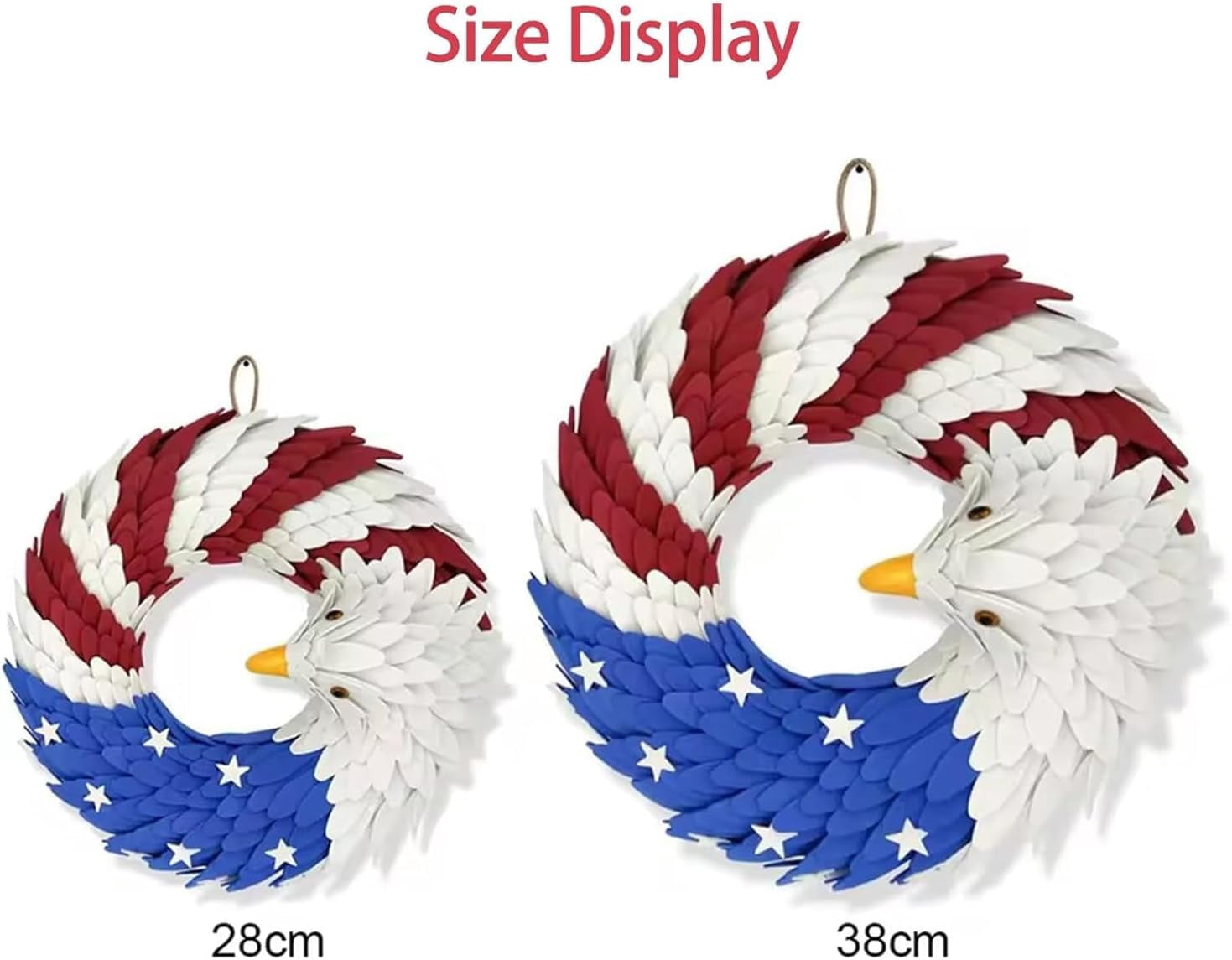 🎁——————————-Welcome to our shop—————————–🎁 If you have any questions, please contact us immediately. Welcome to my treasure trove of a shop! You’re sure to find what you need here! Thank you for your patronage! Have a wonderful day! Features: 1.Handcrafted patriotic eagle design 2.Durable wood with vibrant colors 3.Weather-resistant for outdoor use 4.Perfect for July 4th & Memorial Day 5.Great gift for veterans & patriots Specifications: Name: 250th Anniversary Eagle Wreath Weight: 70 g (8 in) / 180 g (12 in) Color: Red, Blue and White Size: 12 * 12 in / 30 * 30 cm 15 * 15 in / 38 * 38 cm Package: 1 Set * 250th Anniversary Eagle Wreath Note: 1. Due to manual measurement, please allow a difference of 1-5g/1-2cm. 2. Due to different displays and different lighting, the picture may not reflect the actual color of the item. Thank you for your understanding.