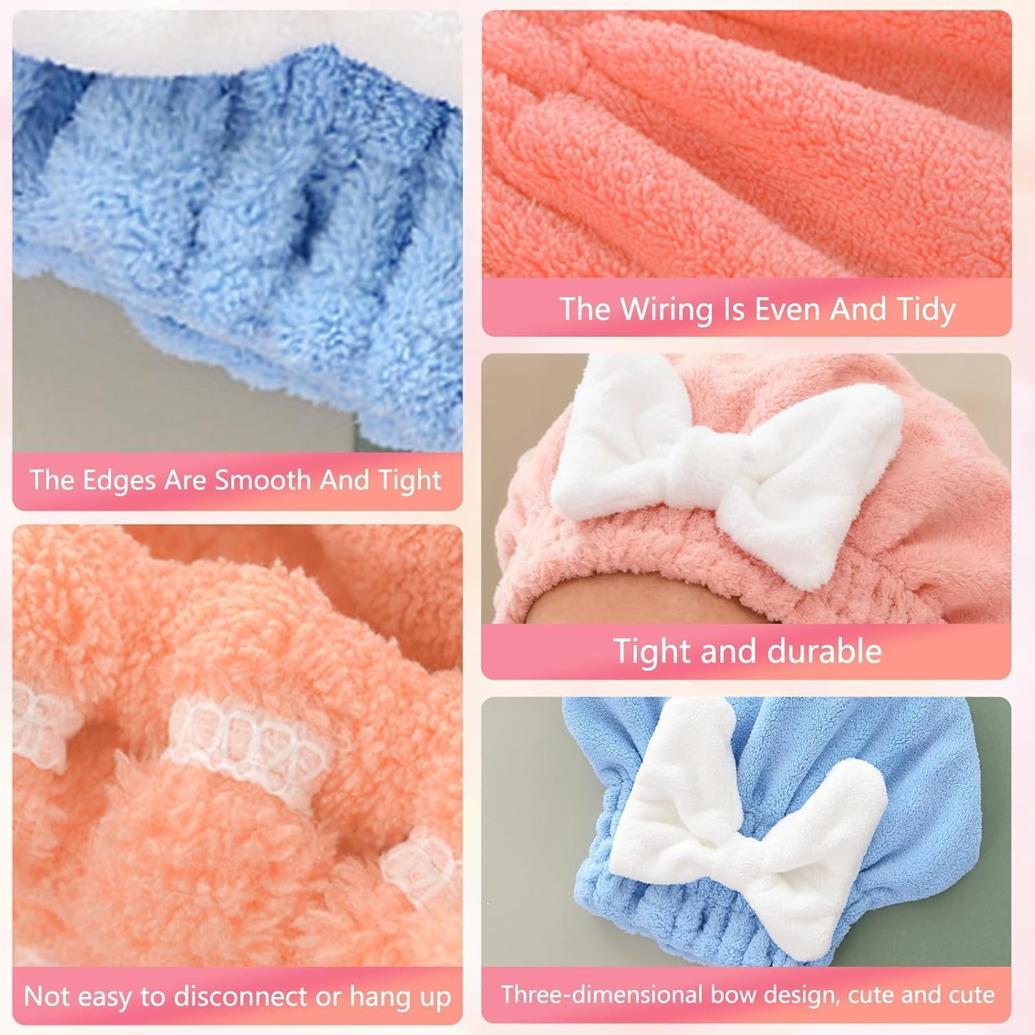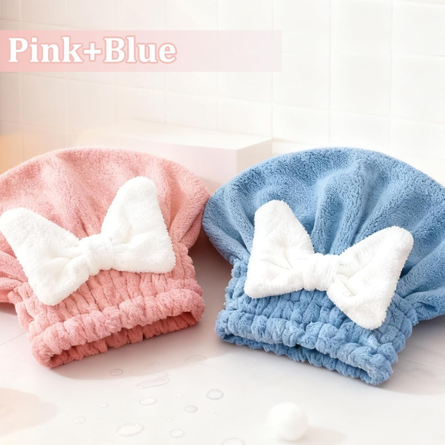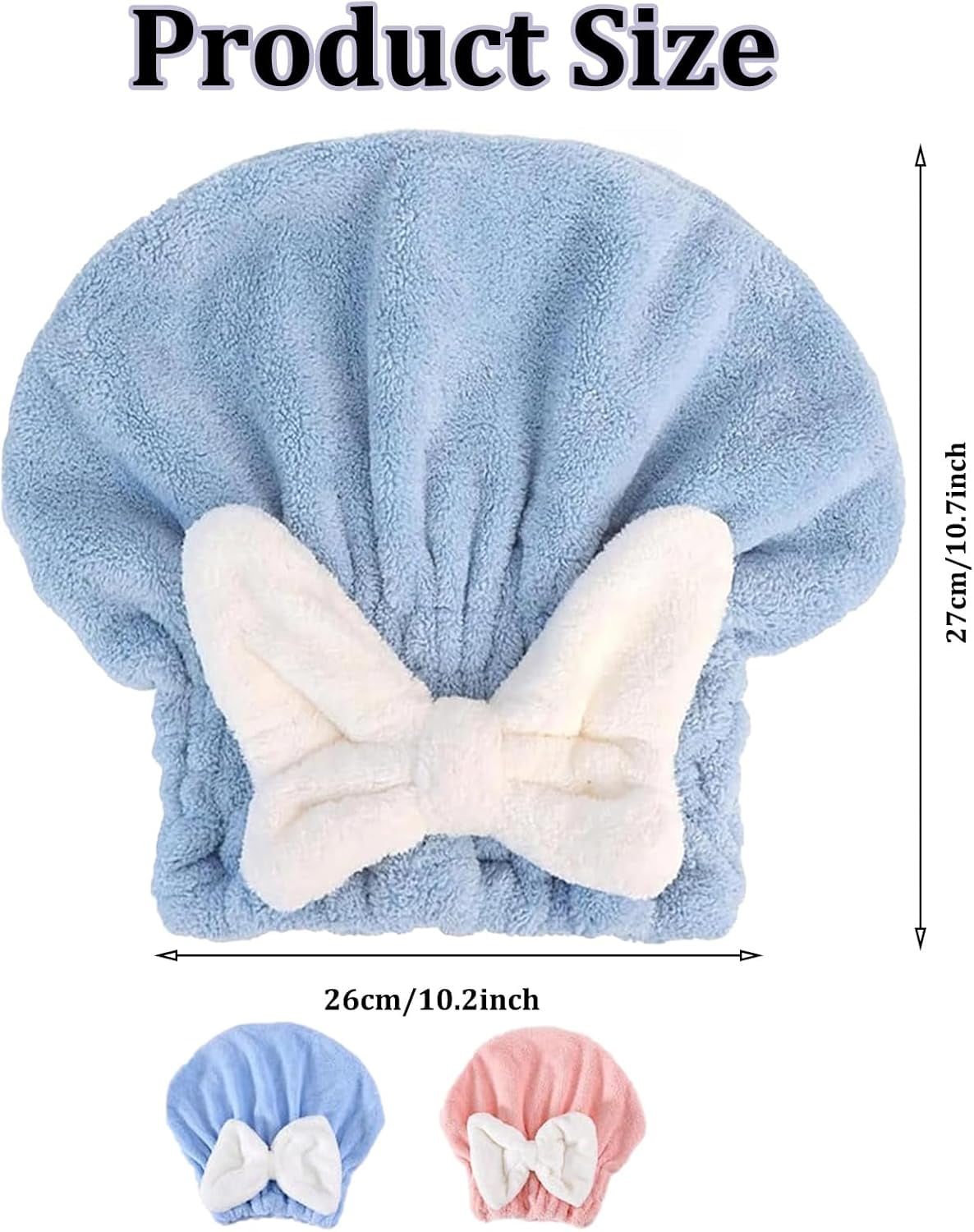 2PCS Absorbent Hair Towel Wrap for Wet Hair | 2026 New Microfiber Quick-Drying Hair Towels with Cute Bow Tie for Women & Girls