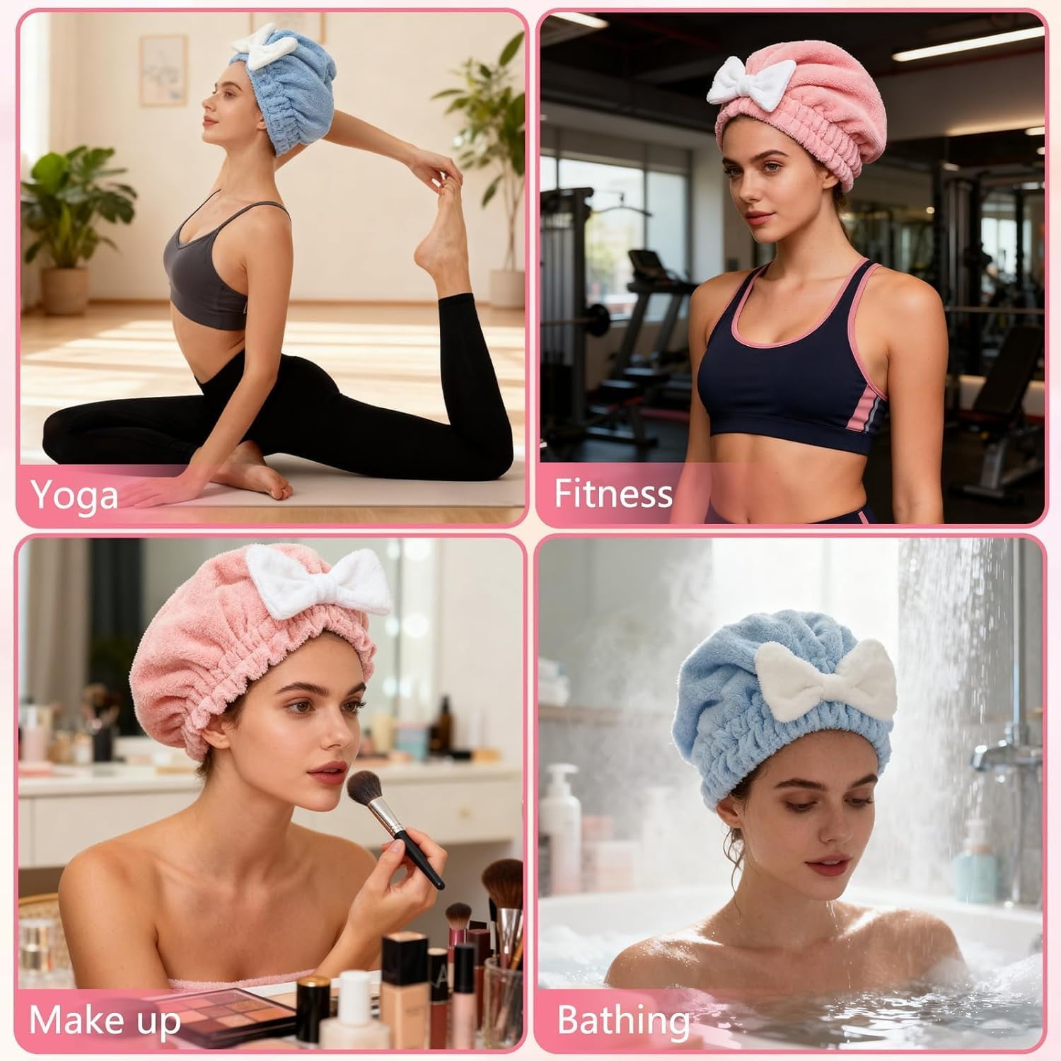 🎁【2PCS Hair Towel Wrap for Women】This 2-piece hair towel wrap set dries wet hair quickly and naturally, helping reduce frizz while saving time and avoiding heat damage. 🎁【Super Absorbent Microfiber Hair Towel】Made from premium microfiber, this hair towel absorbs water efficiently, shortening drying time compared to regular towels. 🎁【Soft & Lightweight Wear】Ultra-soft and lightweight design prevents scalp strain and slipping, allowing comfortable wear during skincare, makeup, or daily activities. 🎁【Easy to Use & Reduce Frizz】Simply wrap and secure like a shower cap. Helps minimize frizz and breakage for smoother, healthier-looking hair. 🎁【Universal for All Hair Types】Suitable for long, short, curly, straight, thick, or fine hair, offering gentle and effective drying for everyday use.