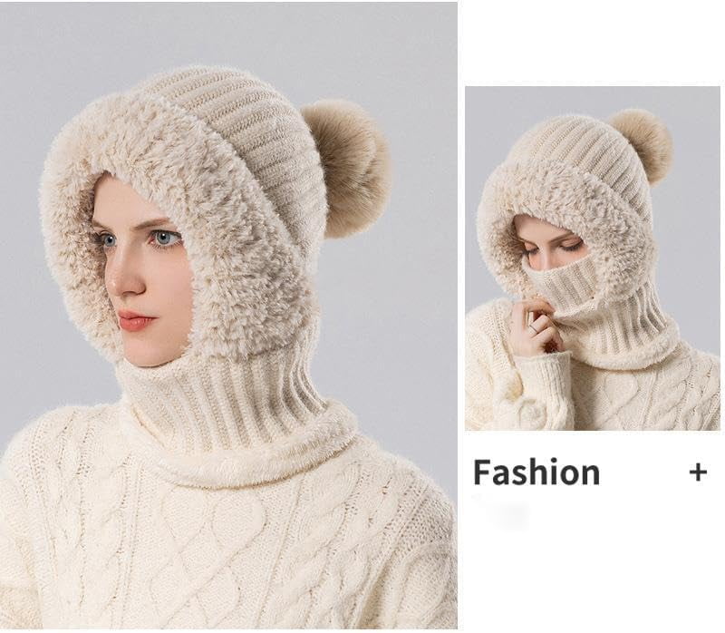 3 in 1 Beanie Hat for Women with Scarf and Mask | Warm Winter Pom Hat for Cold Weather