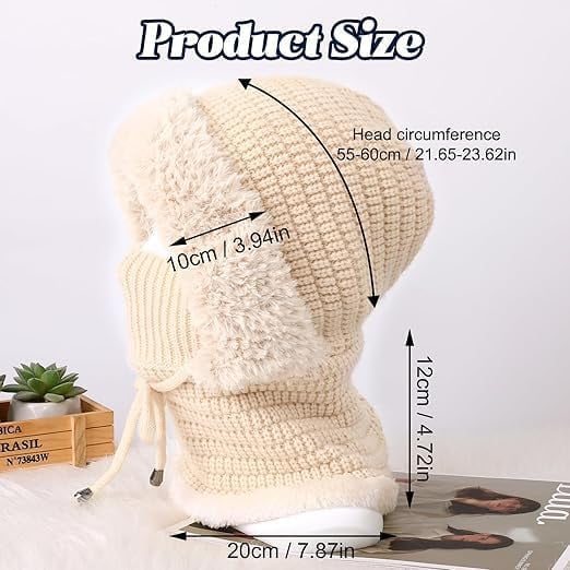 🎁【3-in-1 Functionality】This winter hat combines a beanie, face mask, and neck warmer, offering full protection against cold, wind, and outdoor elements. 🎁【Adjustable Design】Elastic design fits various head shapes securely, ensuring comfort and stability during walking, skiing, or other outdoor activities. 🎁【Premium Materials】Soft, breathable fabric conforms to your head while providing maximum warmth, keeping you cozy during winter activities. 🎁【Warm and Windproof】Chunky knit texture and plush fleece lining retain heat, block wind, and match the winter aesthetic for stylish protection. 🎁【Suitable for All Winter Weather】Provides superior warmth in blizzards, strong winds, and freezing rain, ideal for extreme winter conditions.