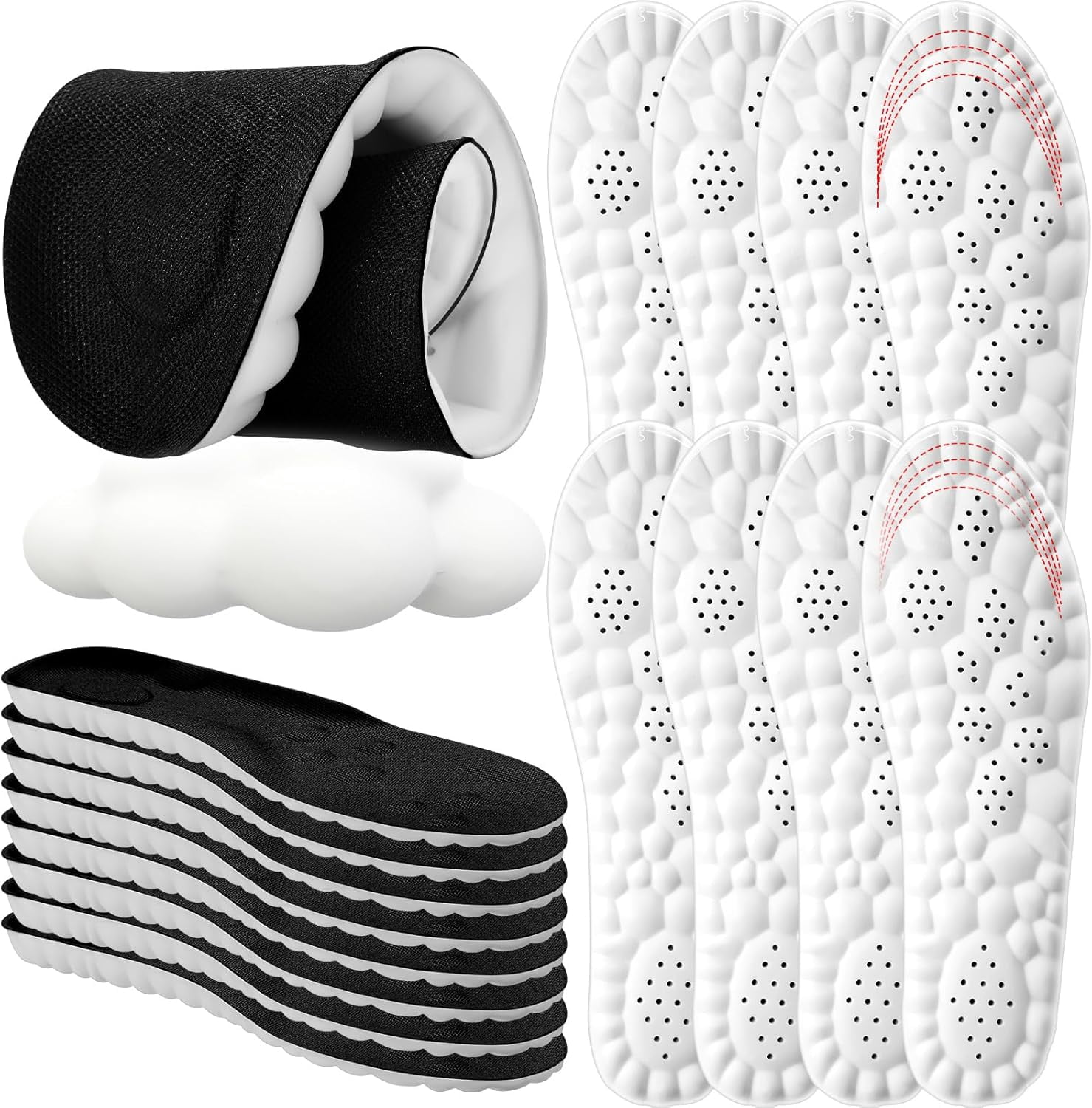 8 Pairs 4D Cloud Insoles for Men & Women | Soft Memory Foam Cushioning with Shock Absorption for Sports Shoes & Foot Pain Relief