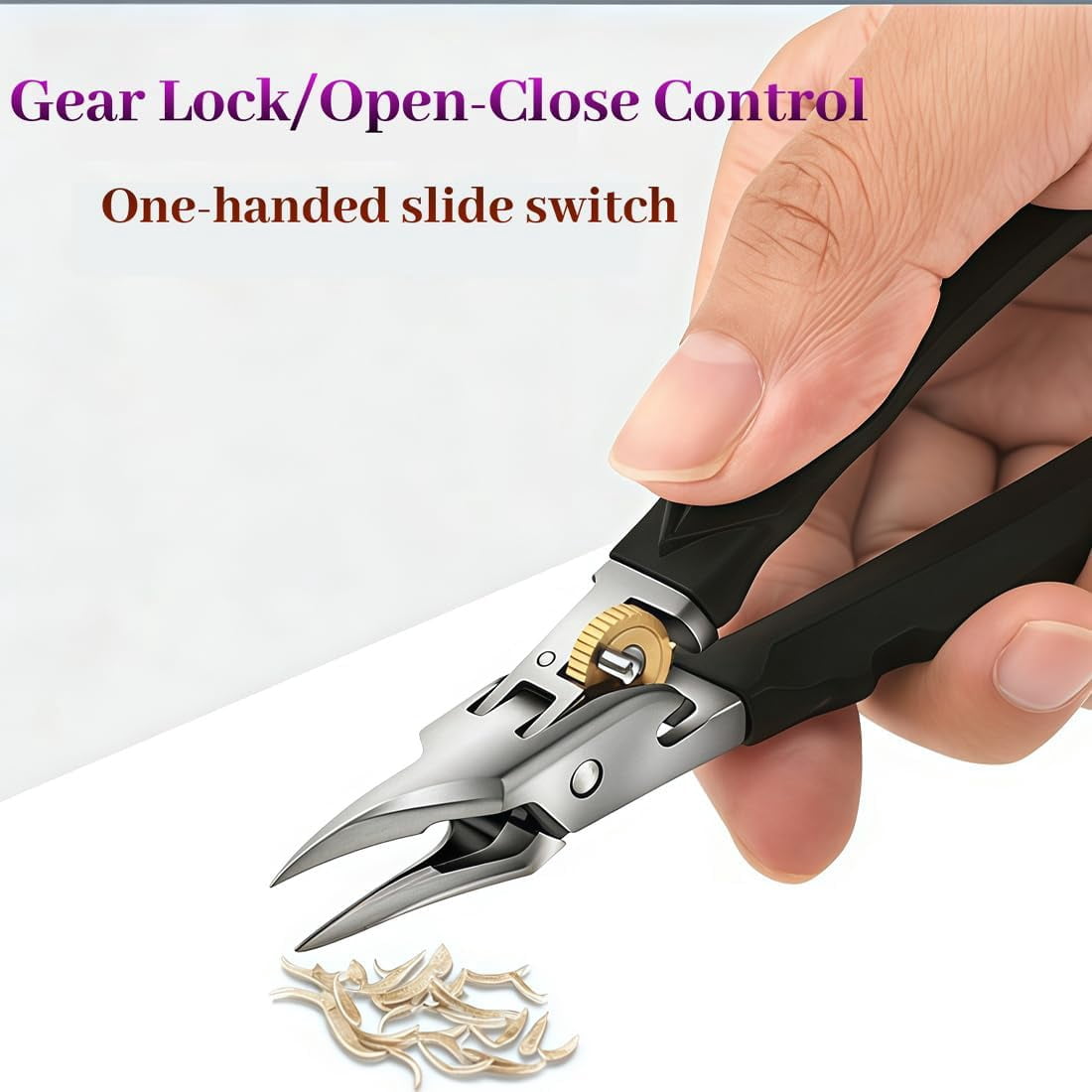 Anti-Slip Nail Clipper Set for Men & Seniors, Ultra Sharp Gear Lock Trimmer for Thick Nails & Ingrown Grooves, Heavy Duty Manicure Kit, Black