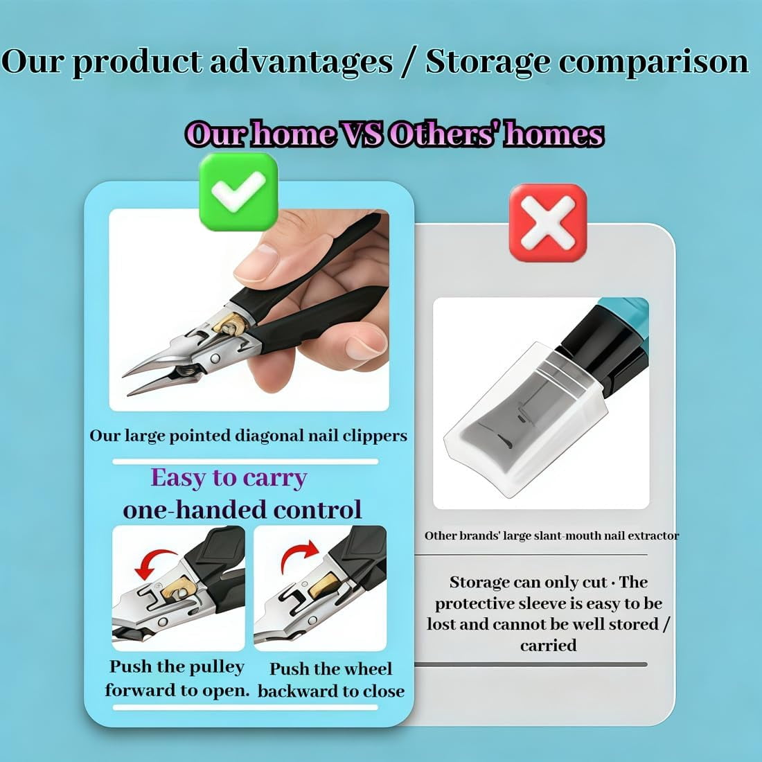 ✨【Precision Trimming】Slanted tip reaches deep to cut ingrown nails safely. Ultra-sharp blades trim thick nails cleanly without splitting or tearing. ✨【Safe & Secure】Features a safety lock to prevent accidents during storage. Ergonomic non-slip handle ensures a firm grip for safe control, even when wet. ✨【Durable Sharpness】Double-ground blades ensure a smooth, burr-free cut. High-quality heavy-duty material stays sharp for years and prevents rust. ✨【Complete Nail Kit】All-in-one set for trimming, shaping, and cleaning. Perfect for home or travel, providing professional manicure results without extra tools. ✨【Effortless Cutting】Heavy-duty blades cut thick, tough nails with minimal force. The wide jaw and easy-grip design make it perfect for men and seniors.