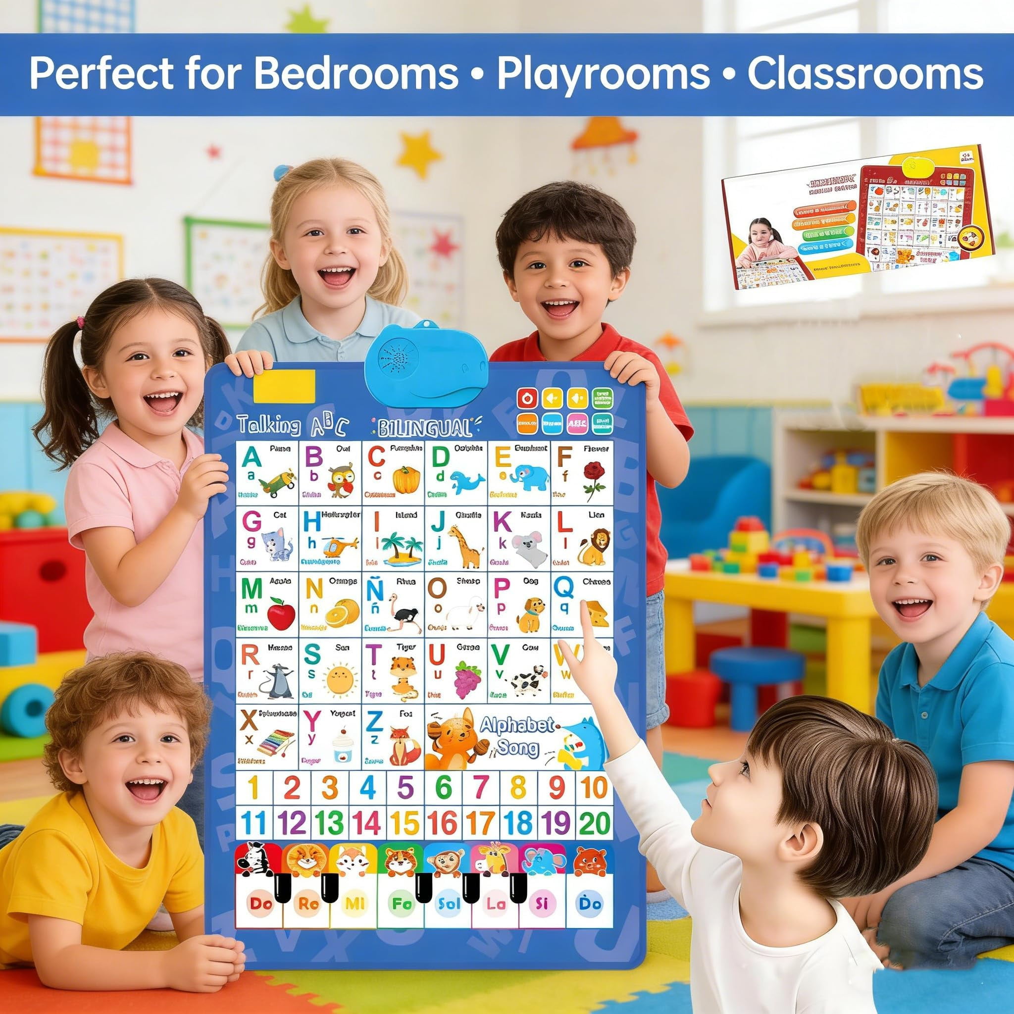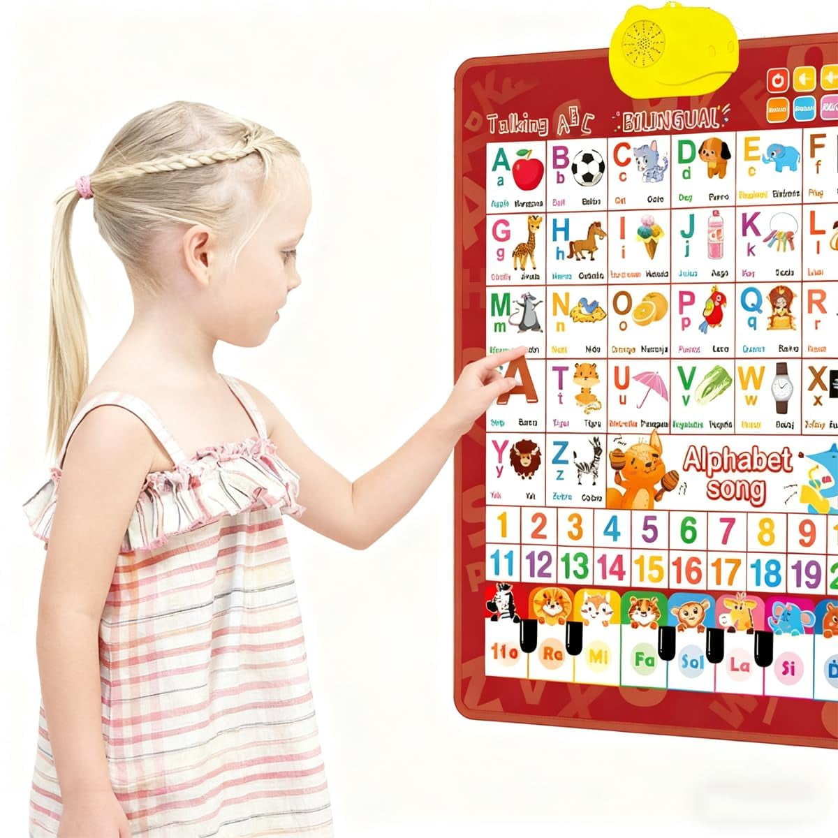 Bilingual Talking Wall Chart for Kids | English & Spanish Interactive Learning Poster with Sounds for Toddlers 3+
