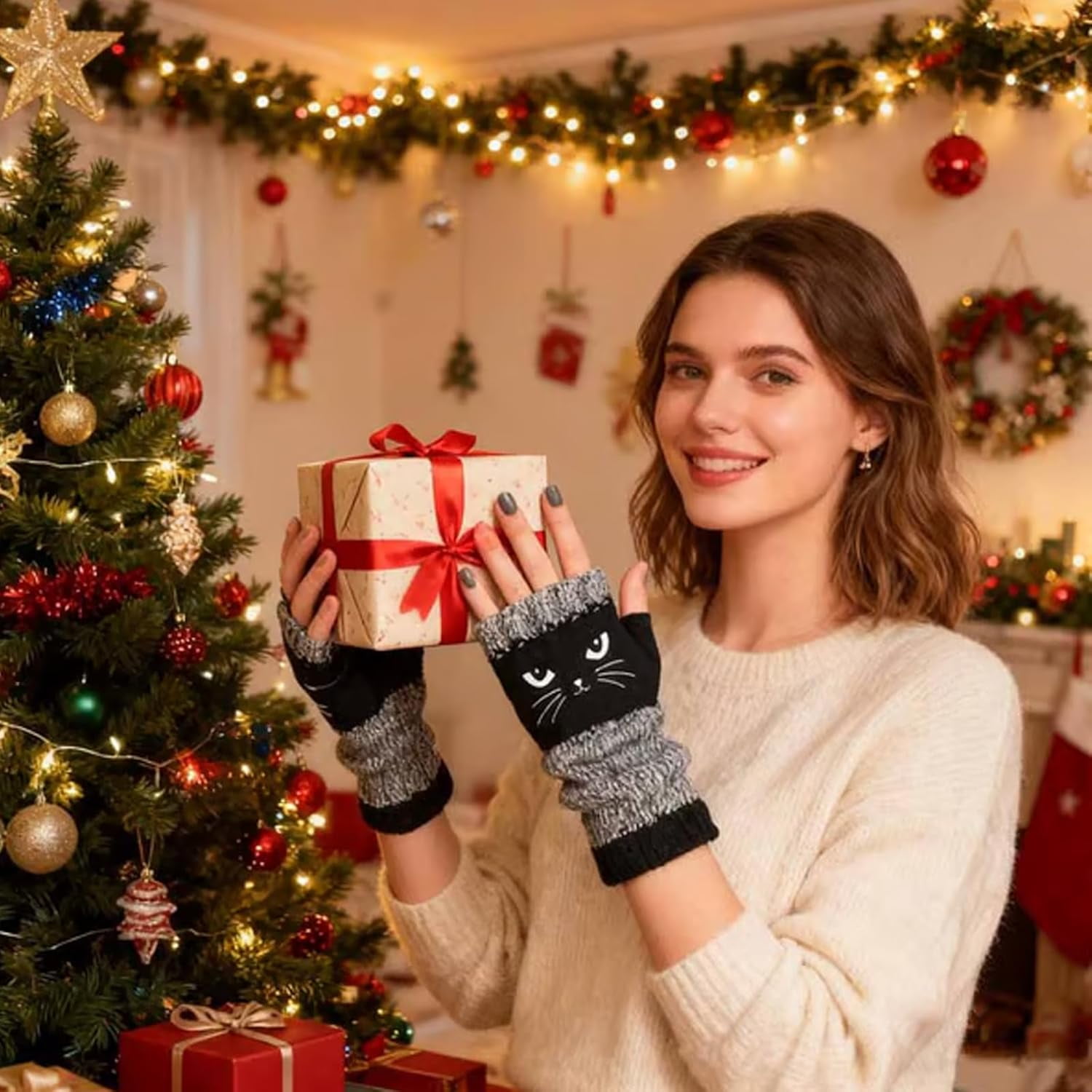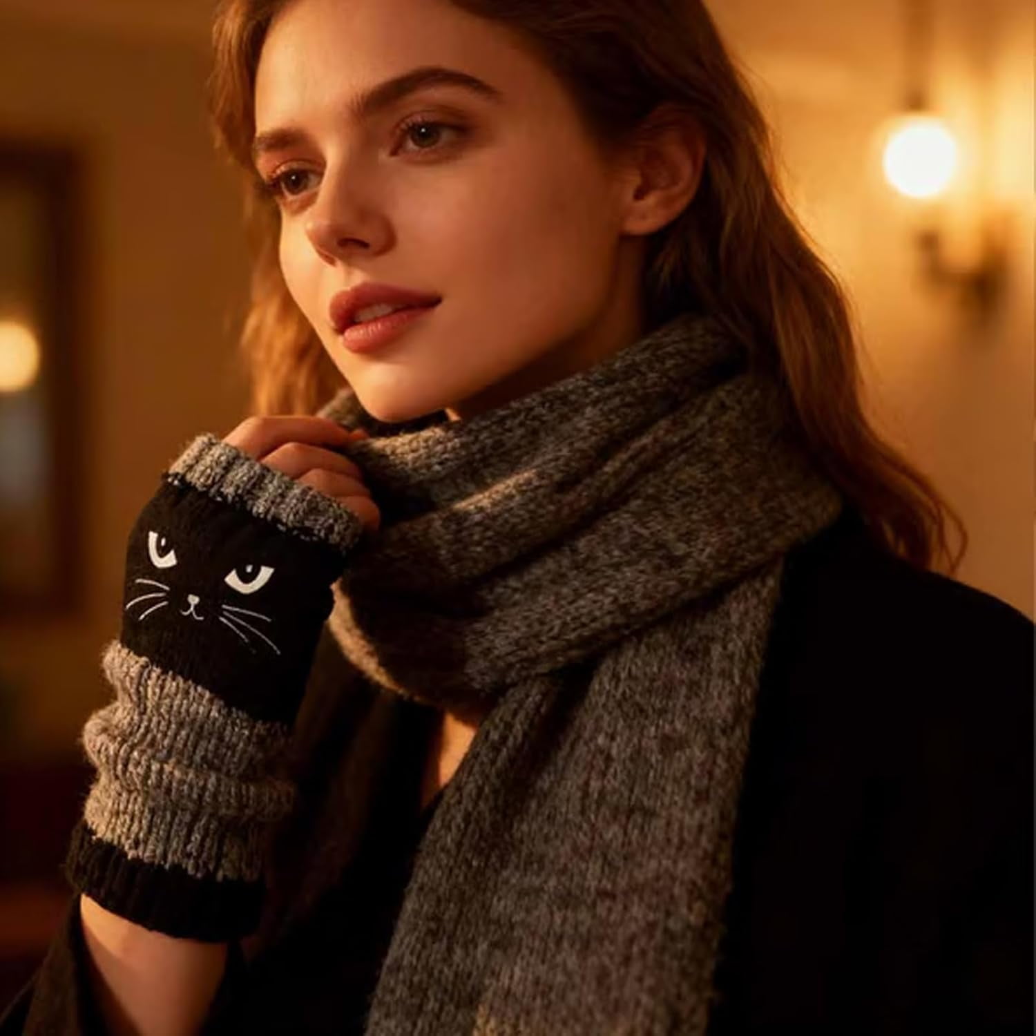 🎁【Adorable Cat Embroidery】Features playful cat embroidery and trendy splicing for a stylish flair. Perfect for showcasing feline-themed fashion in casual outfits. 🎁【Functional Fingerless Design】Provides full fingertip freedom for touchscreen use and handling small items. Maintains hand warmth without compromising dexterity. 🎁【Cozy Knitted Warmth】Made from soft, stretchy knitted fabric that effectively traps heat. Ensures comfortable warmth with breathability in chilly weather. 🎁【Perfect Women’s Fit】Designed with a snug, flexible silhouette specifically for women’s hands. Adapts to various sizes for lightweight, all-day comfort. 🎁【Versatile Everyday Accessory】Ideal for commutes, shopping, or casual outings. Pairs well with sweaters and coats, making a thoughtful gift for cat lovers.