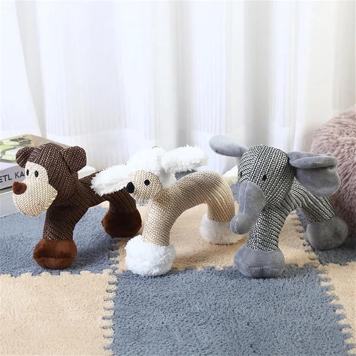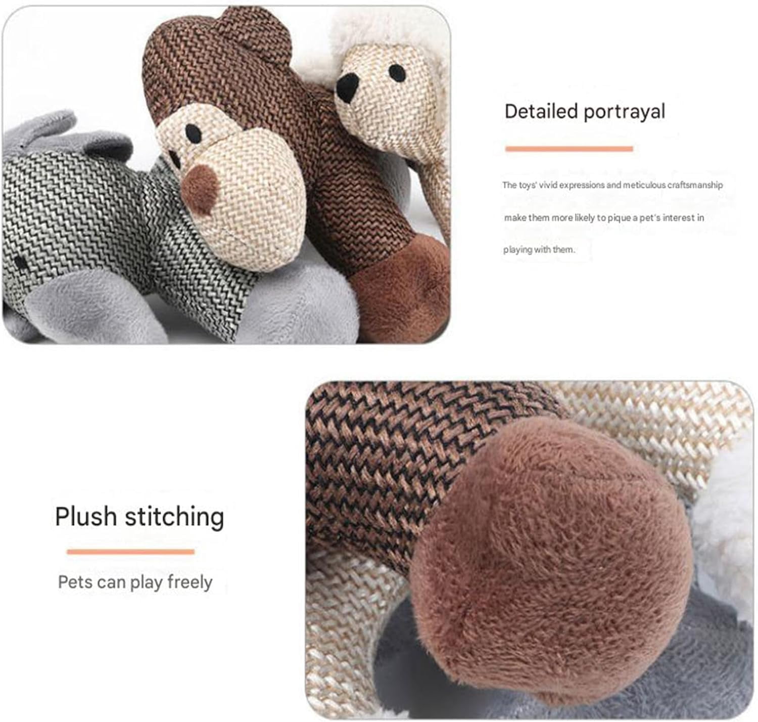 🎁【Interactive Sounds】Features a built-in squeaker and crinkle layer. Keeps dogs engaged and entertained with exciting noises during every play session. 🎁【Durable Linen Fabric】Made from wear-resistant linen with reinforced stitching. Withstands chewing and fetching while remaining soft on teeth and gums. 🎁【Cute Animal Design】Adorable safari shapes feature a soft textured exterior. Easy for dogs to carry, chew, and cuddle for comfort after playtime ends. 🎁【For All Dog Sizes】Designed for small, medium, and large breeds. Lightweight and durable, making it the perfect companion for indoor and outdoor fun. 🎁【Versatile Play】Perfect for fetch, light tug-of-war, or solo chewing. Helps reduce boredom and anxiety while strengthening the bond with your pet.