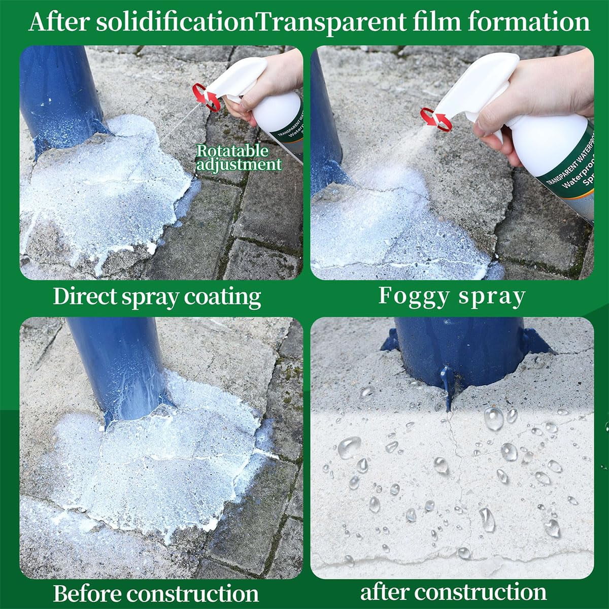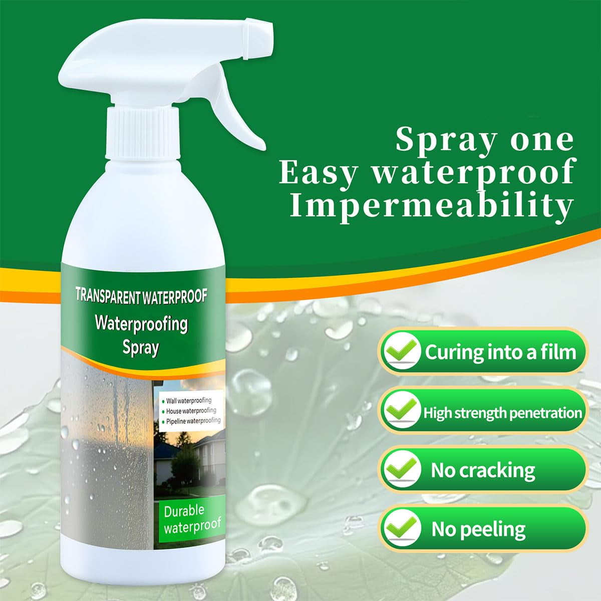 🎁【Durable and Weatherproof】Quick-drying, transparent spray forms a protective film that adheres to surfaces, resisting rain, wind, and sunlight for long-lasting protection. 🎁【Quick Drying】Dries in 1–2 hours for immediate use; fully cures in 24–48 hours to create a durable, waterproof seal for reliable leak repair. 🎁【Multi-Purpose】Effective on roofs, window sills, walls, and more. This invisible waterproof sealant simplifies repairs, making maintenance quick and easy. 🎁【Easy to Apply】Simply clean the surface and spray directly. The precision nozzle ensures even coverage, suitable for beginners and experienced users alike. 🎁【Multi-Functional Product】Use as a tile repair adhesive or floor grouting sealant; this transparent waterproof spray maintains your home and prevents leaks efficiently.
