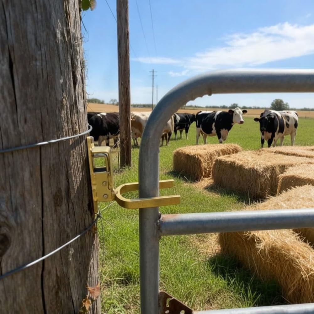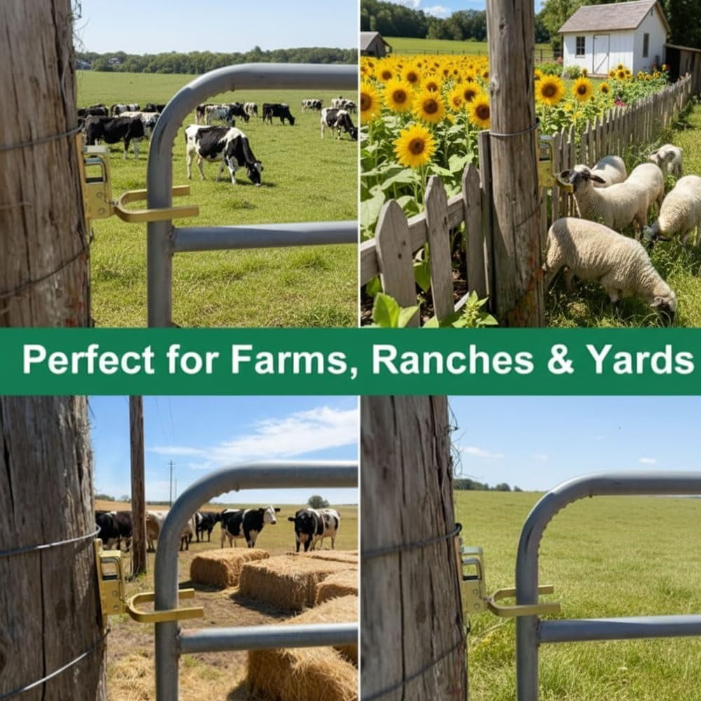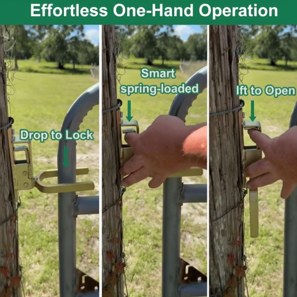🎁【Instant One-Handed Locking】Operate your gate effortlessly with just one hand using the simple lift-and-release mechanism. This is ideal when your hands are occupied with tools, buckets, or while handling livestock, saving you time and hassle on the farm. 🎁【Automatic & Secure Spring Action】The integrated heavy-duty spring ensures the latch engages and locks automatically the moment the gate closes. This provides reliable security to keep cattle, sheep, horses, and other animals safely contained within their enclosure. 🎁【Heavy-Duty & Weatherproof Construction】Built from thick, zinc-coated steel that is both rust and corrosion-resistant. This robust construction is designed to endure harsh farm and ranch environments, heavy use, and all weather conditions year after year. 🎁【Universal & Easy Installation】Designed for quick installation on a wide variety of metal pipe gates, tubular gates, or wooden posts using common tools like a wrench or drill. No complex welding is required, making setup straightforward for most standard gate setups. 🎁【Versatile Farm & Ranch Use】A reliable solution for securing pasture gates, corrals, stall doors, and driveway entrances. Perfect for farms, ranches, equestrian facilities, and large residential properties where dependable animal containment is essential.