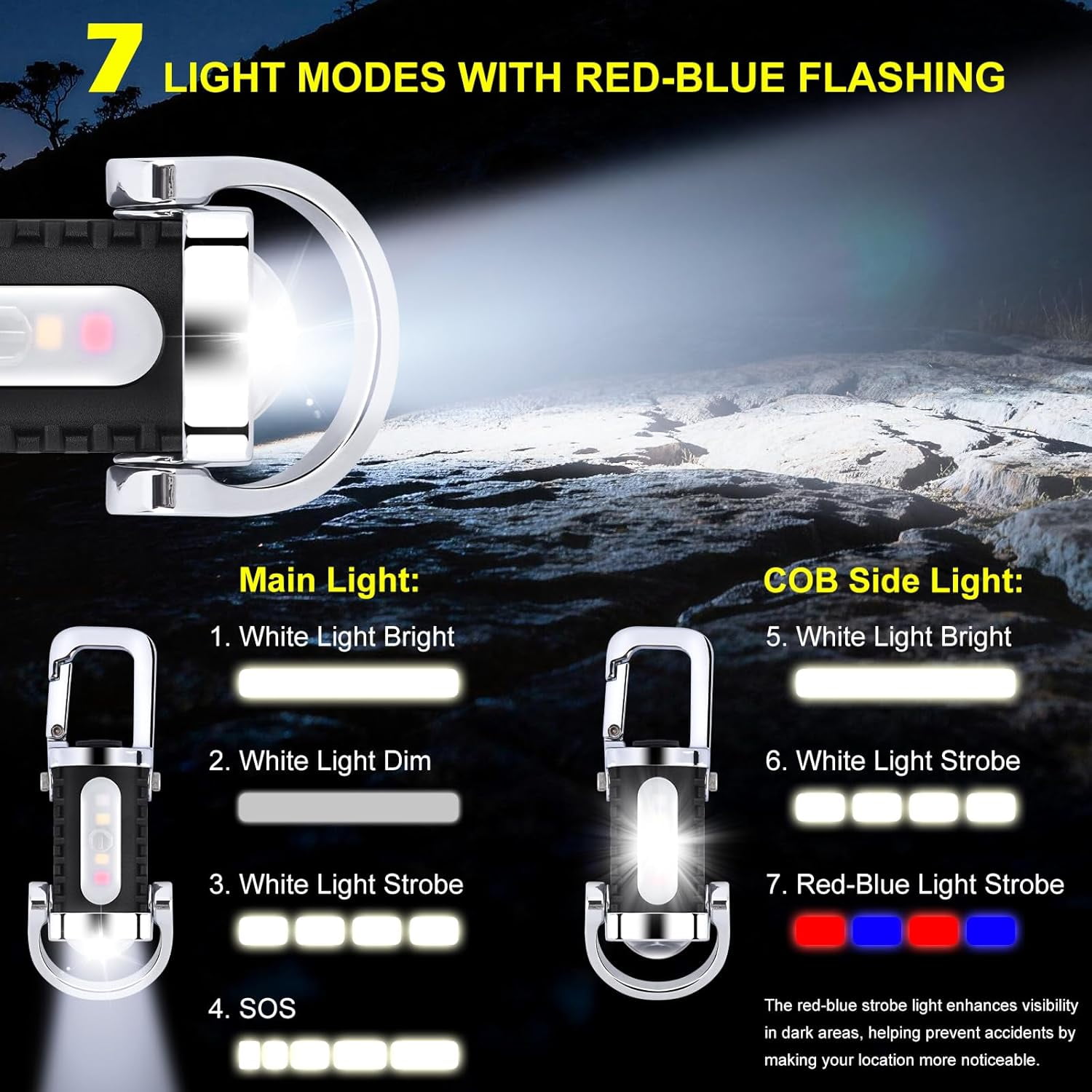 Keychain Flashlight, Portable Rechargeable Bright Keychain Flashlight, with 7 Modes & COB Light for Emergencies