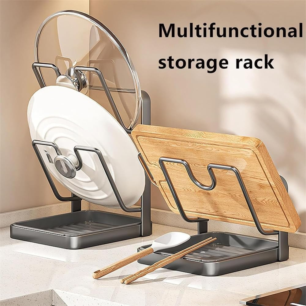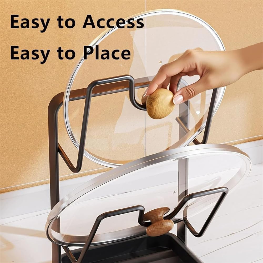 Kitchen Pot Lid Storage Rack | Lid Holder with Removable Drip Tray for Counter & Stove Top, Pot Lid Organizer Rack
