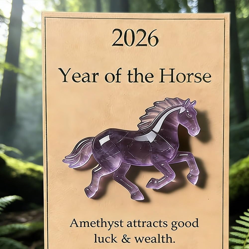 Lucky Amethyst Crystal Horse — Symbol of Wisdom & Success (2026), Unique Clear Figurine for Home Office Desk Decor