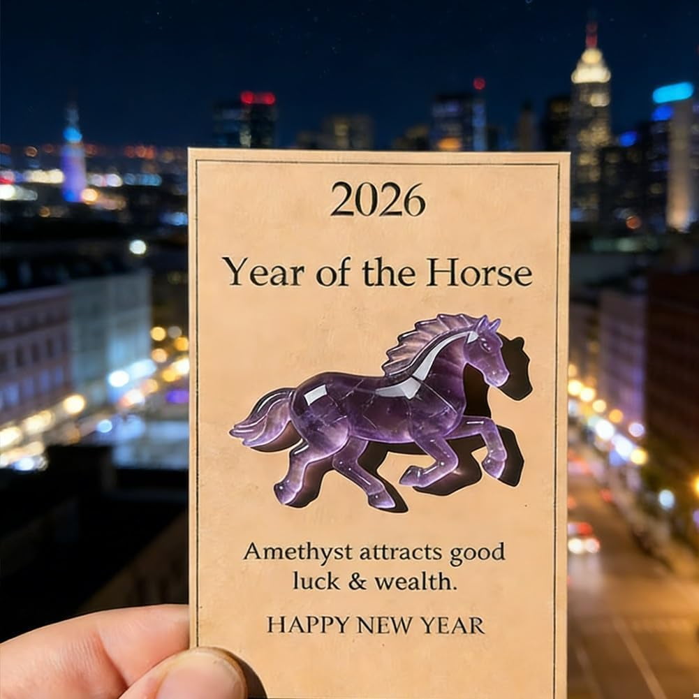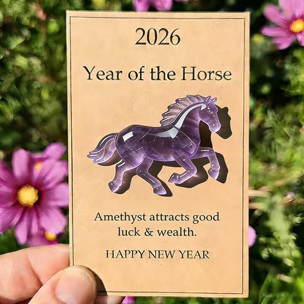 🎁【Hand-Carved Crystal Art】Expertly hand-carved from natural amethyst, each horse displays unique color patterns, making every piece one-of-a-kind. 🎁【Symbol of Strength & Motivation】Represents freedom, confidence, and forward momentum, inspiring personal growth in your home or office. 🎁【Elegant Home Decor】Adds a refined touch to desks, shelves, or meditation spaces, complementing modern, boho, or minimalist interiors. 🎁【Compact & Durable Design】Polished with a glossy finish, this crystal horse is compact, easy to display, and built for long-lasting decorative use. 🎁【Meaningful Gift Choice】Perfect for birthdays, New Year, housewarmings, or for crystal and horse enthusiasts, making a thoughtful, memorable gift.