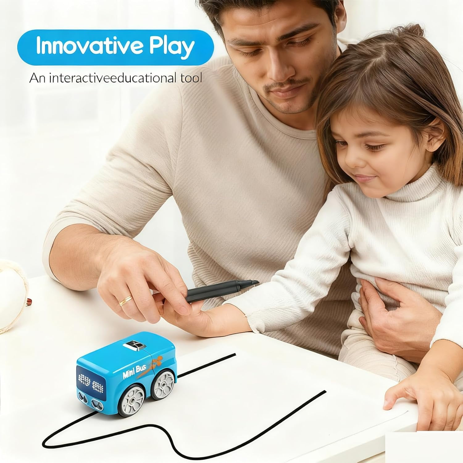 🎁——————————-Welcome to our shop—————————–🎁 If you have any questions, please contact us immediately. Features: 1.Hand gesture and remote control fun 2.Automatic obstacle detection navigation 3.Animated LED light expressions 4.Follows lines for creative play 5.Four modes plus demo function Specifications: Name: Magic Mini Bus Toy Control Modes: Gesture Control / Remote Control / Auto Avoidance / Line Tracking / Music / Demo Material: ABS + Electronic Components Battery Life: >60 Minutes Charging Time: ~40 Minutes Weight: ~0.5kg Dimensions: 6 × 6.5 × 10 cm(2.36*2.56*3.94in) Incline Capability: Up to 30° Colors: Blue / White Package: 1 PCS * Magic Mini Bus Toy Note: 1. Due to manual measurement, please allow a difference of 1-5g/1-2cm. 2. Due to different displays and different lighting, the picture may not reflect the actual color of the item. Thank you for your understanding.