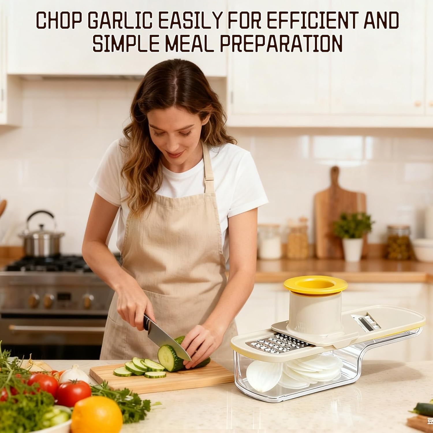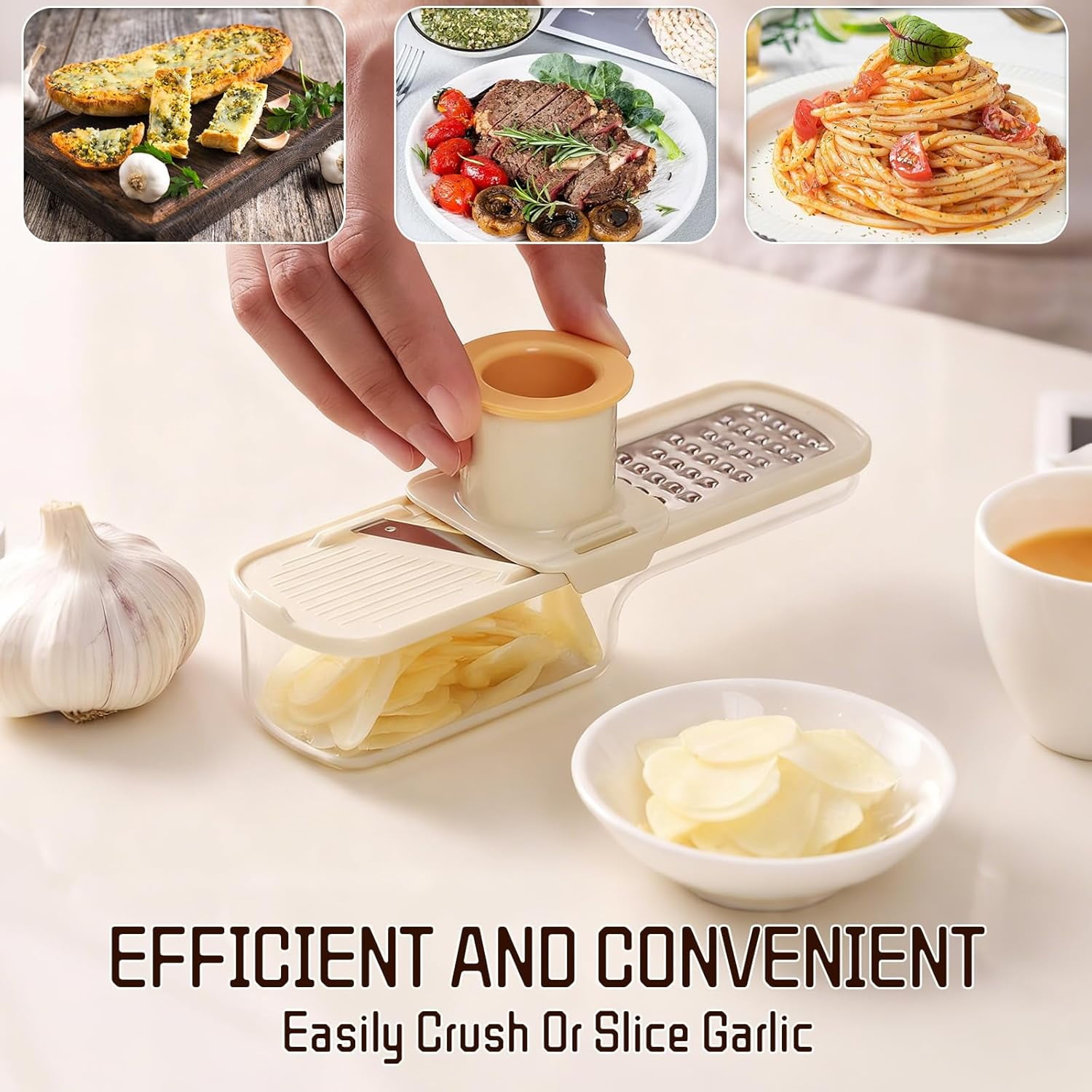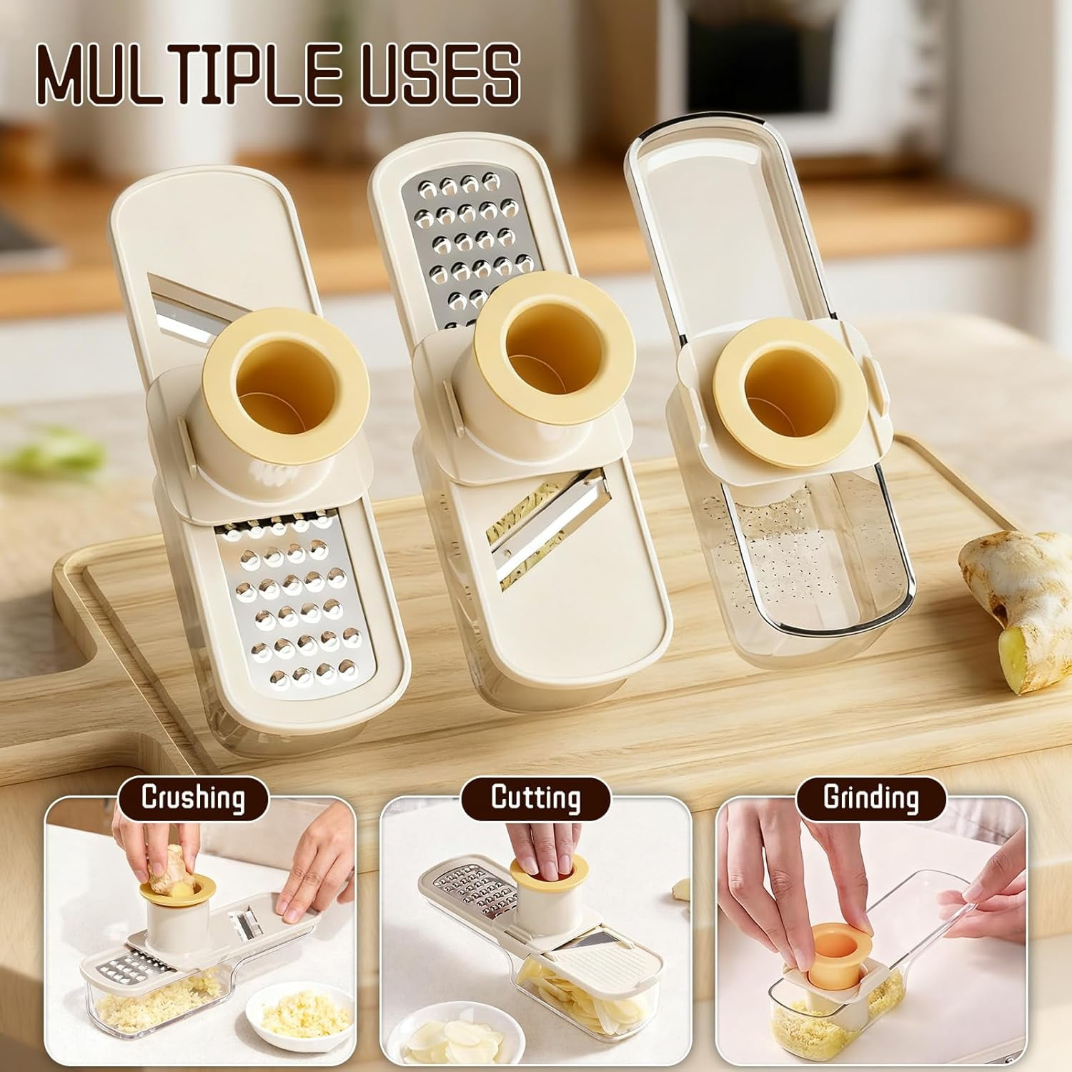 Mini Garlic Grinder | 3 in 1 Ginger Garlic Grater with Container, Functional Mandoline Slicer & Veggie Shredder with Hand Guard