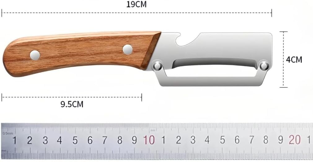 🔥【Razor-Sharp Precision Peeler】Stainless steel blade delivers smooth, paper-thin peels on fruits and vegetables with minimal waste and clean edges. 🔥【Wide Blade for Faster Prep】Enlarged cutting surface covers more area per stroke, improving efficiency while preserving more edible flesh. 🔥【2-in-1 Peeler & Bottle Opener】Combines vegetable peeling and bottle opening in one compact tool, reducing clutter and simplifying kitchen tasks. 🔥【Ergonomic Non-Slip Wood Handle】Solid wooden handle offers a comfortable, secure grip that reduces hand fatigue during extended food prep. 🔥【Durable & Rust-Resistant Build】Premium stainless steel and natural wood construction ensures long-lasting performance and easy cleaning.