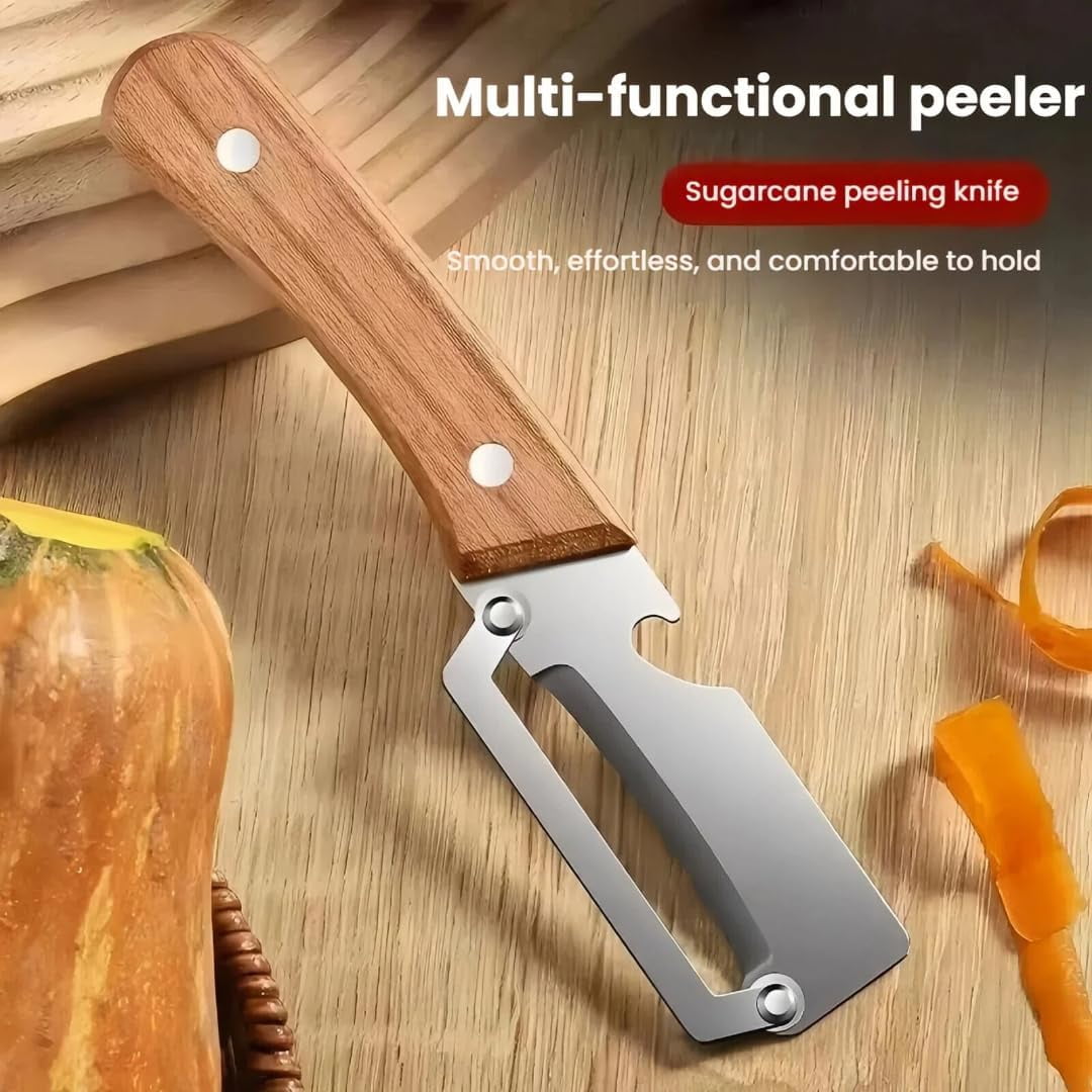 Multi-functional Vegetable Peeler for Kitchen | 2026 New with Non-slip Wooden Handle & Bottle Opener for Fruits, Sugar Cane, Pumpkin