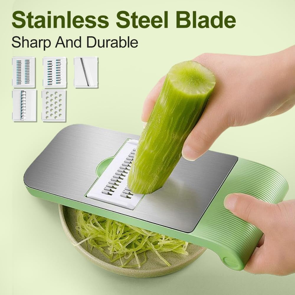 🎁【Versatile Cutting Functions】Includes 3 or 5 interchangeable stainless steel blades for slicing, julienning, shredding, waffle cuts, and grinding fruits, vegetables, and cheese. 🎁【Safe & Stable Use】Designed with a hand guard, non-slip rubber base, and ergonomic handle to protect fingers and ensure stable, controlled slicing over bowls or counters. 🎁【Durable Food-Grade Materials】Sharp, rust-resistant stainless steel blades paired with BPA-free ABS housing deliver long-lasting performance for daily food preparation. 🎁【Easy Cleaning & Compact Storage】Rinses clean under running water; foldable design with blade storage box keeps parts organized and saves kitchen space. 🎁【Time-Saving Kitchen Tool】Speeds up meal prep for home cooking with multifunctional performance, making it a practical slicer for everyday use or gifting.