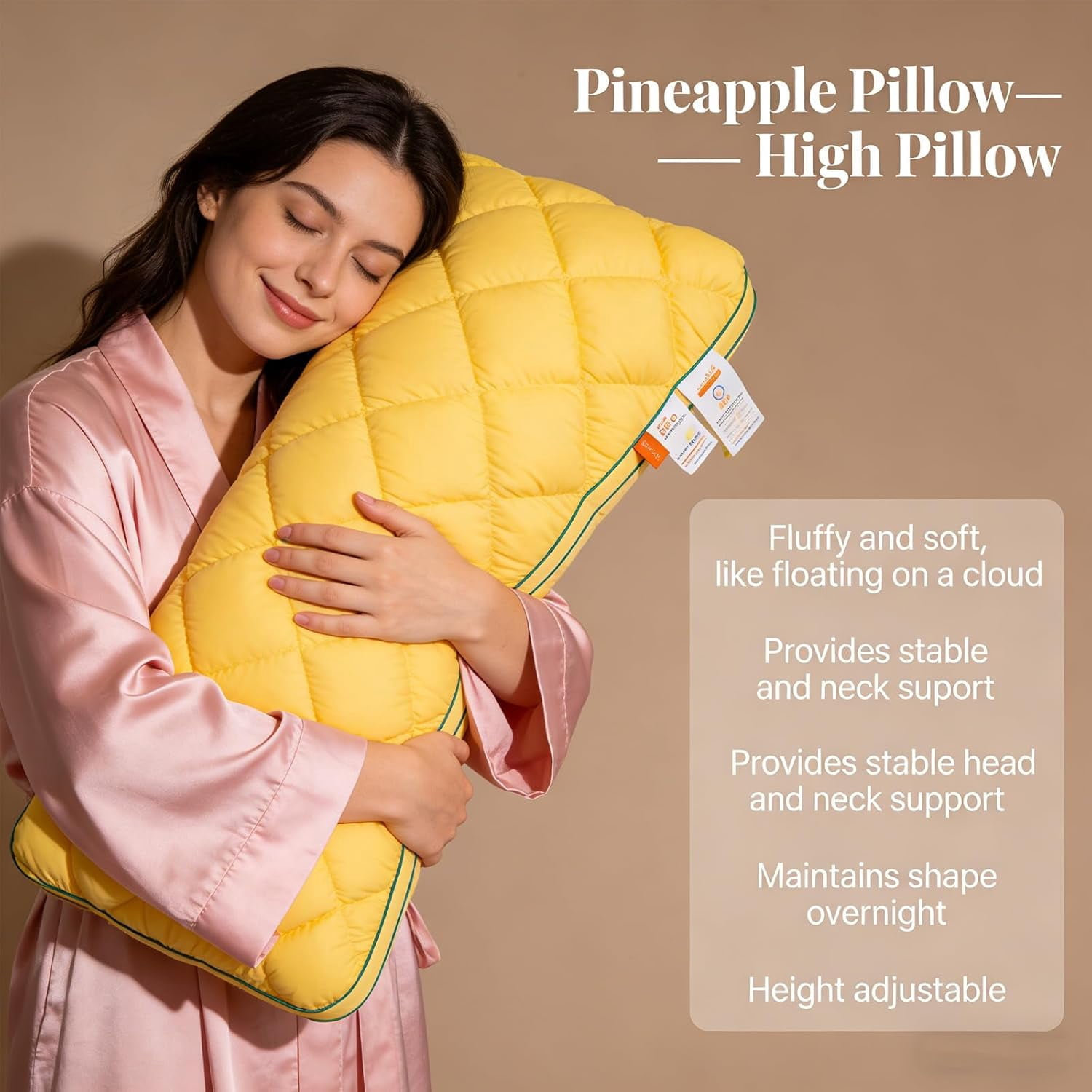 Pineapple Cloud-Like Pillow, Mellow Sleep Pillow Cloud Feel, Fluffy Pineapple Pillow with Balanced Support, Machine Washable Bedding