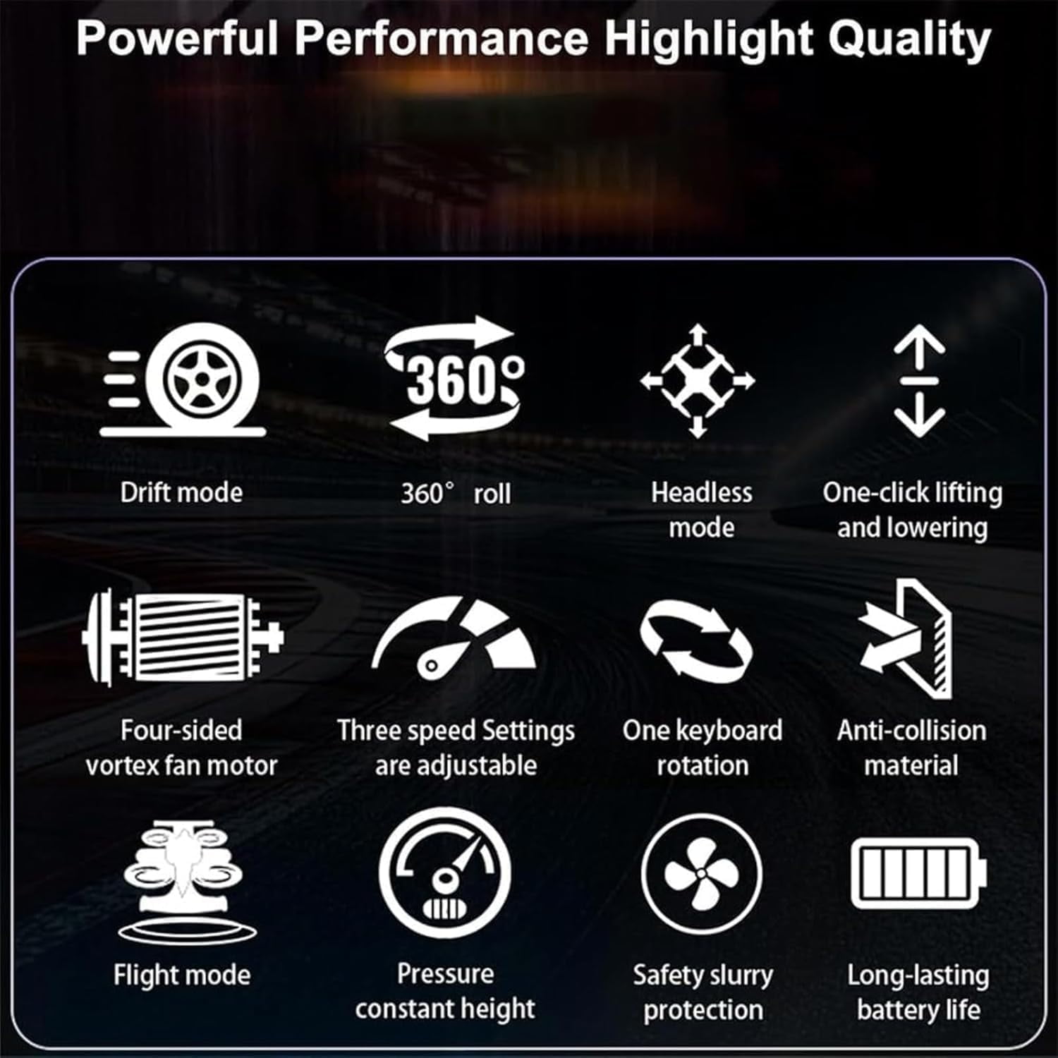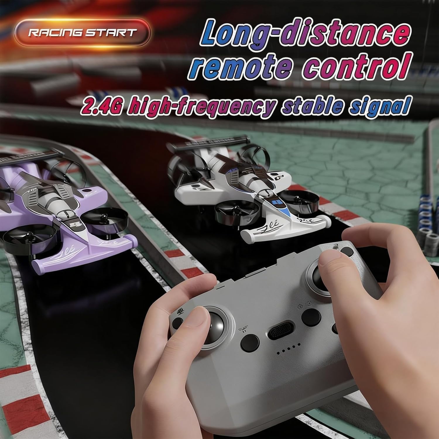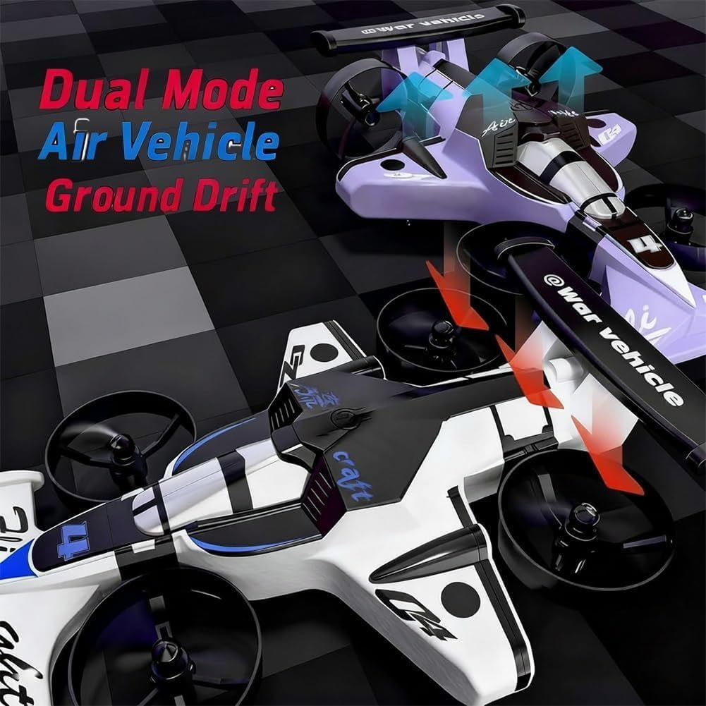 🎁【2-in-1 Land & Air Dual Mode】Transform between a high-speed RC car and a stable flying drone with one button. This dual-mode design offers double the fun for outdoor adventures, indoor play, and exciting family activities. 🎁【Cool 360° Stunts & LED Light Show】Perform impressive aerial flips, spins, and circles effortlessly. Colorful LED lights add a vibrant visual effect to both driving and flying, making every stunt more exciting. 🎁【USB Rechargeable & 2.4GHz Remote Control】Features a convenient USB charging port for the battery. The 2.4GHz remote provides a stable, responsive connection and allows multiple vehicles to operate together without interference. 🎁【Easy One-Key Control for All Ages】Simple controls with one-key takeoff/landing and intuitive steering make it easy for kids and beginners to master. Enjoy smooth driving and flying fun without a steep learning curve. 🎁【Durable & Impact-Resistant Build】Made from tough ABS plastic to withstand bumps and crashes during high-speed driving and adventurous flying. A resilient toy built for lasting fun and play.