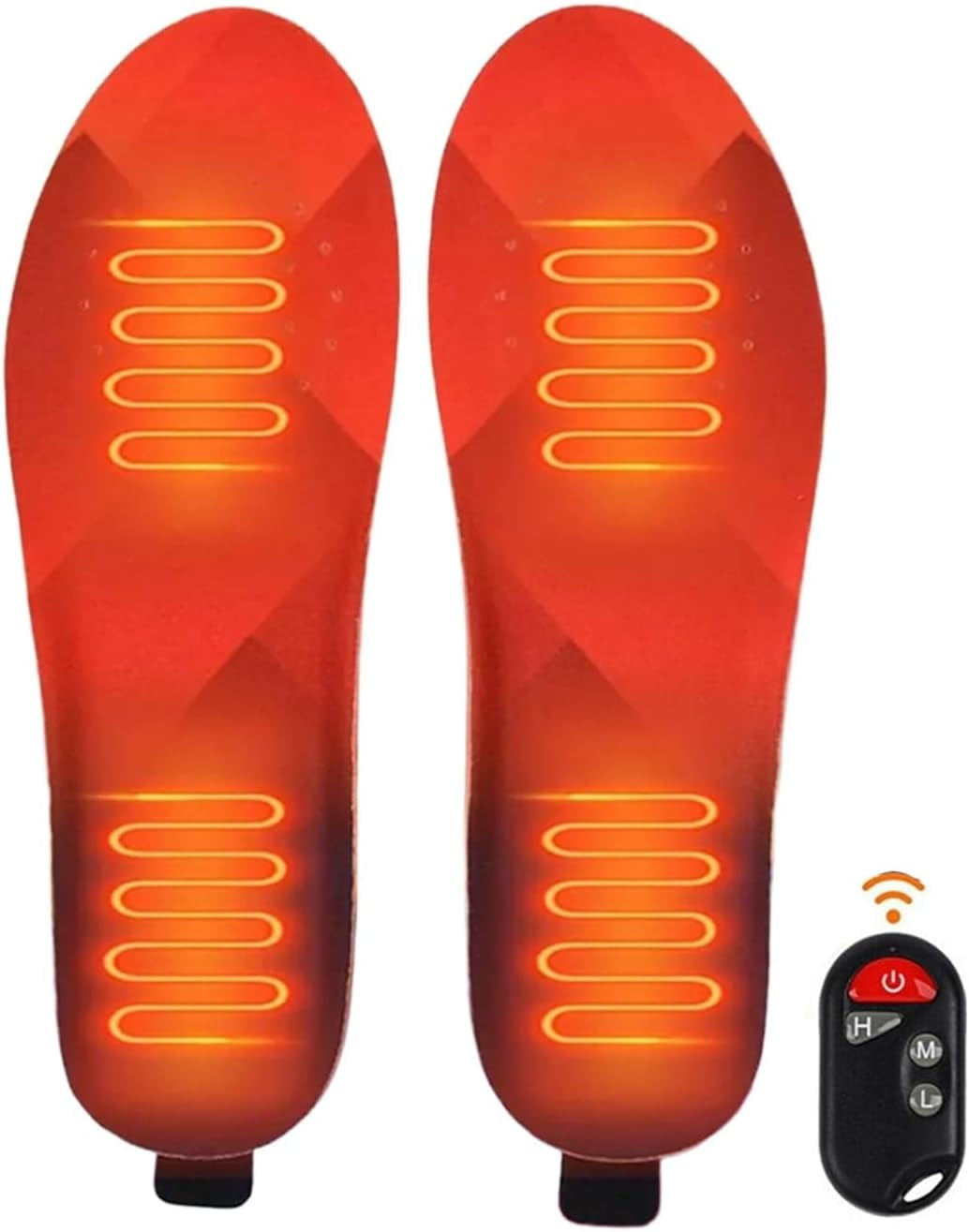 🎁【Full-Foot Warming Comfort】These electric insoles deliver soothing, even heat across your entire foot to keep you warm and comfortable during extended outdoor activities in freezing conditions. 🎁【Adjustable Heat with Remote】Features a wireless remote control with three precise temperature settings (High/Medium/Low), allowing you to easily customize warmth levels for optimal comfort on the go. 🎁【Slim & Trimmable Fit】Designed with a low-profile, slim construction that fits discreetly inside most boots and shoes. They can be easily trimmed to match your exact shoe size for a perfect fit. 🎁【Long-Lasting Rechargeable Battery】Equipped with a built-in, high-capacity rechargeable battery. Provides hours of warmth on a single charge, making them reliable for all-day outdoor adventures. 🎁【Durable for Winter Sports】Crafted from quality materials with an ergonomic shape for support. Perfect for demanding winter activities like hunting, skiing, hiking, and cold-weather work.