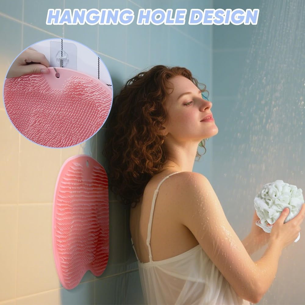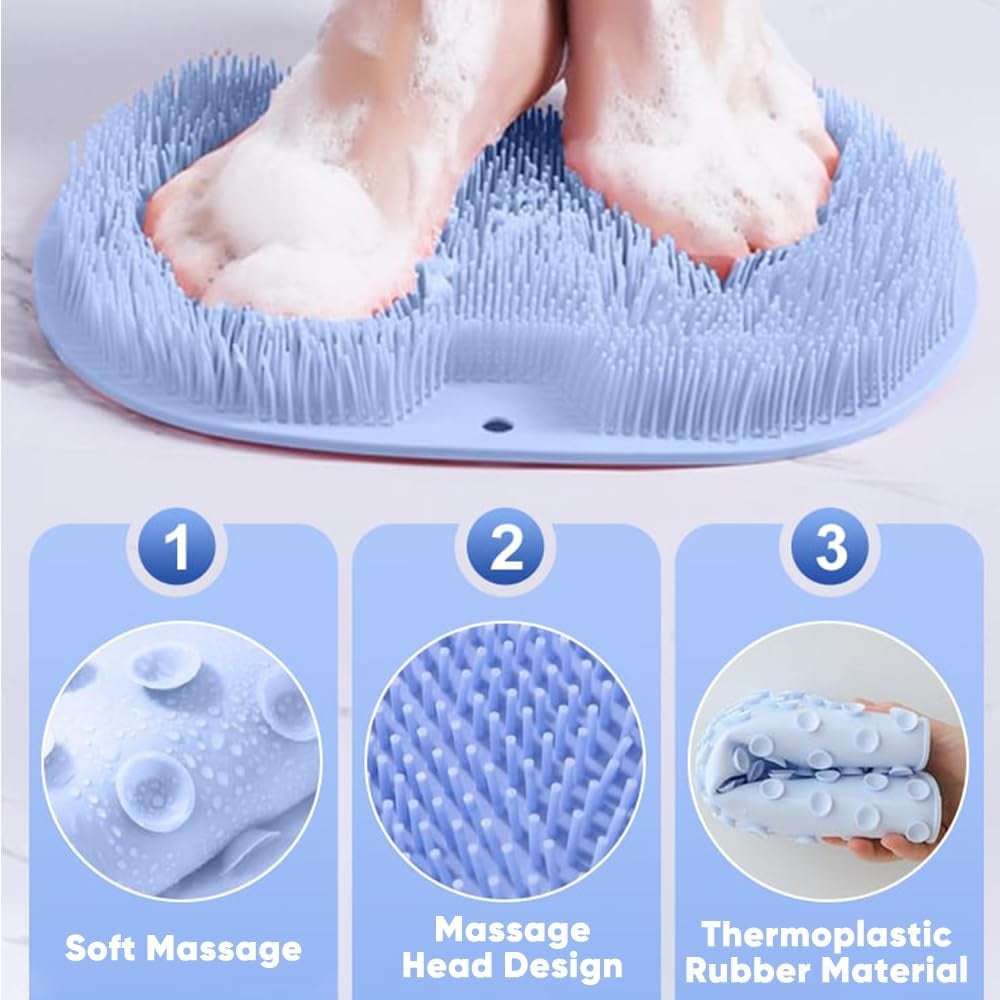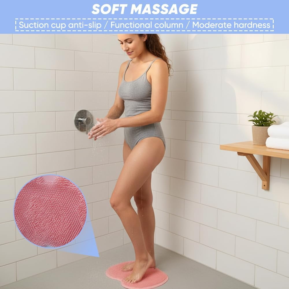 Shower Foot & Back Scrubber Massage Pad | Wall Mounted Non-Slip Foot Cleaning & Massage Pad with Suction Cups, 9.8×11.8 in