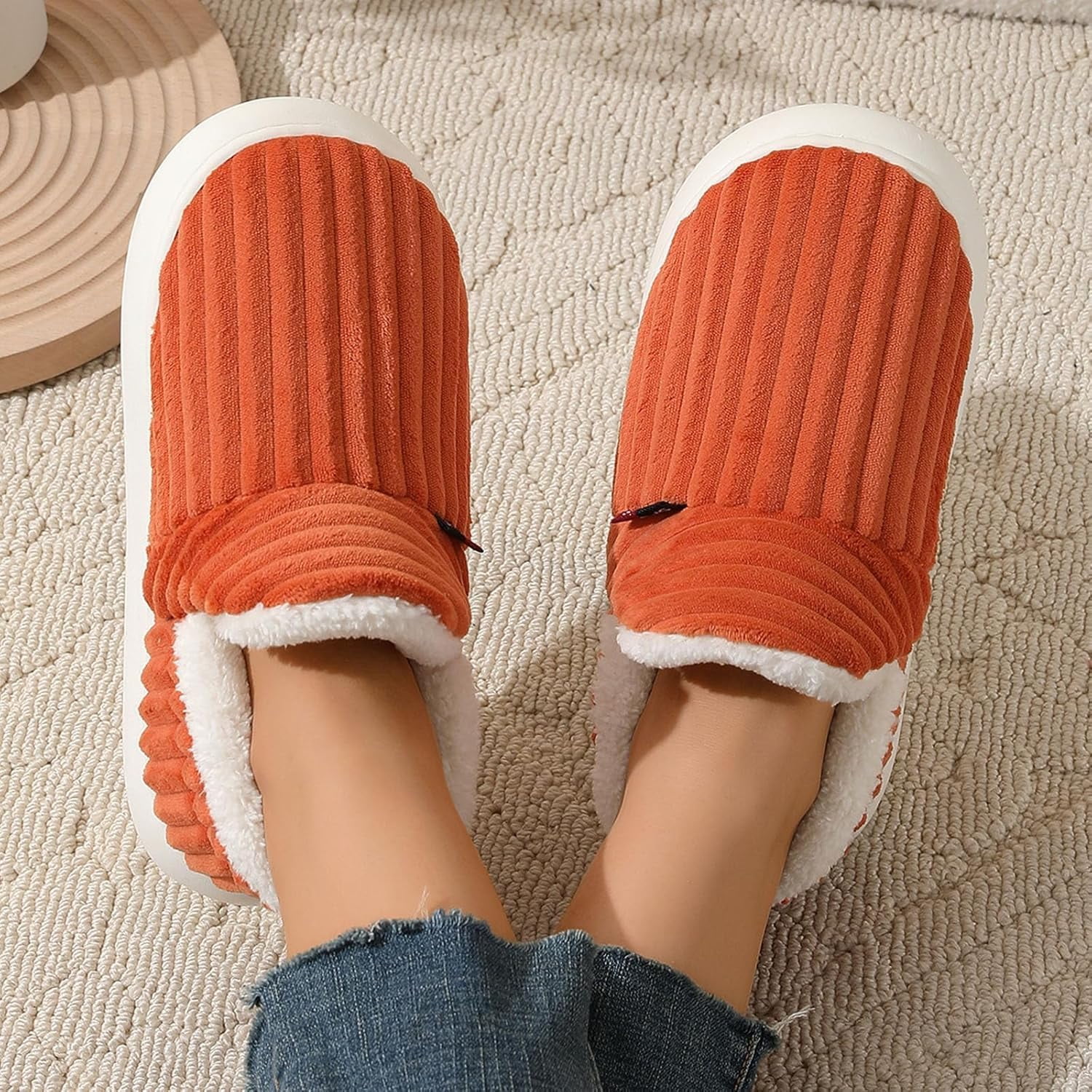 🎁【All-Day Warmth】Fully enclosed cotton slippers with plush corduroy lining provide cozy warmth and soft comfort for chilly autumn and winter days, keeping feet snug indoors. 🎁【Easy to Wear】Slipper booties are simple to put on and remove, offering instant relaxation and comfort for daily indoor wear. 🎁【Anti-Slip】Features a textured, non-slip, and wear-resistant sole, preventing slips on smooth surfaces and ensuring safe indoor and light outdoor use. 🎁【Stylish and Versatile】Fluffy slippers offer a fashionable, simple design suitable for indoor and outdoor use, available in various colors and sizes to match any style. 🎁【Great Choice】A thoughtful gift for family and friends, these slippers provide warmth and comfort during cold winter days, ideal for home or casual wear.