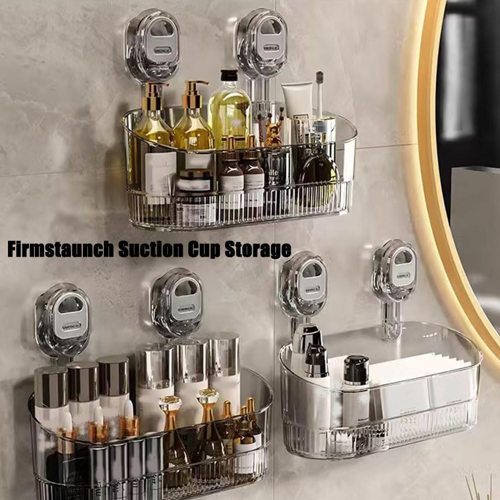 Suction Cup Storage Box, No-Drill Bathroom Suction Storage Rack and Wall Organizer Basket for Bathroom and Kitchen
