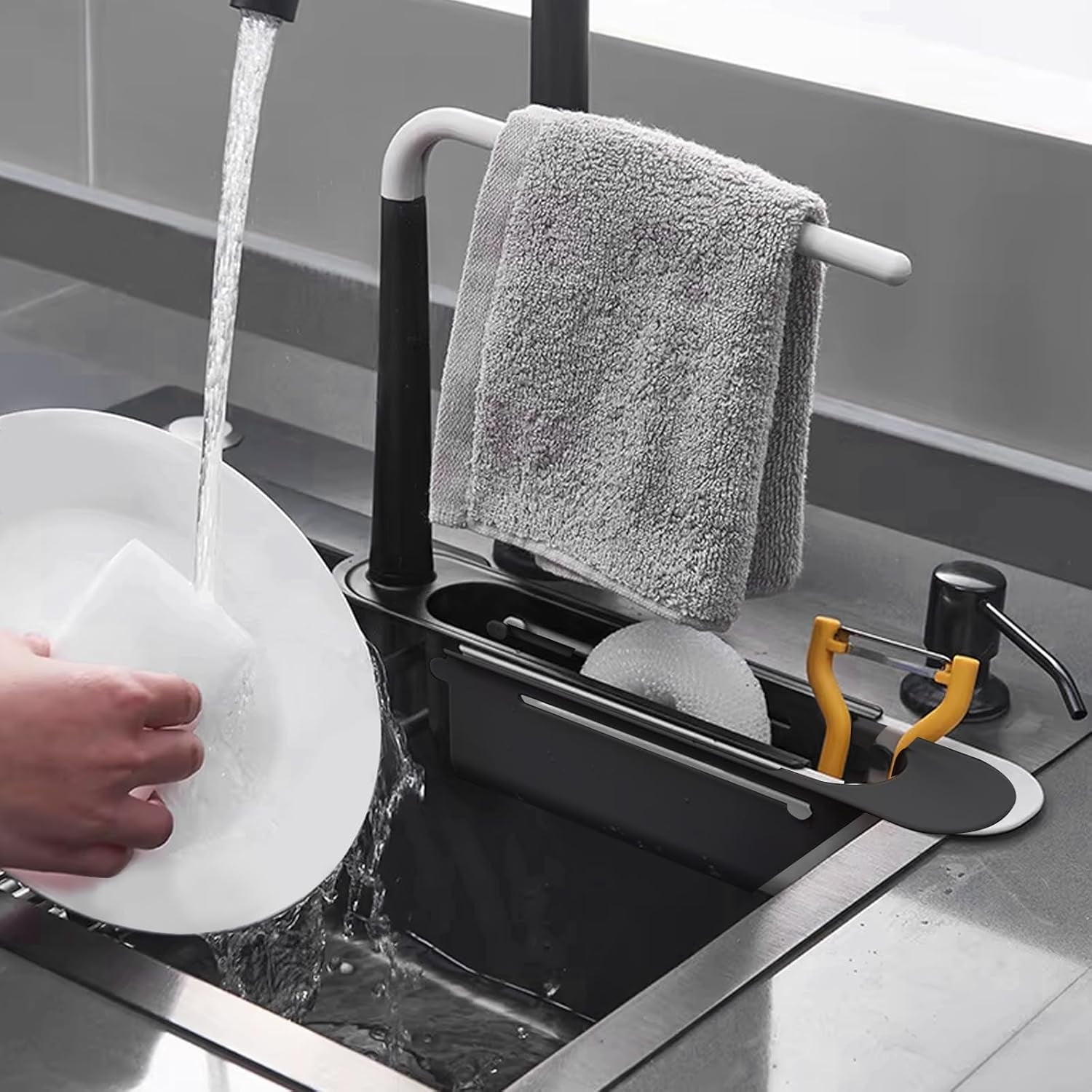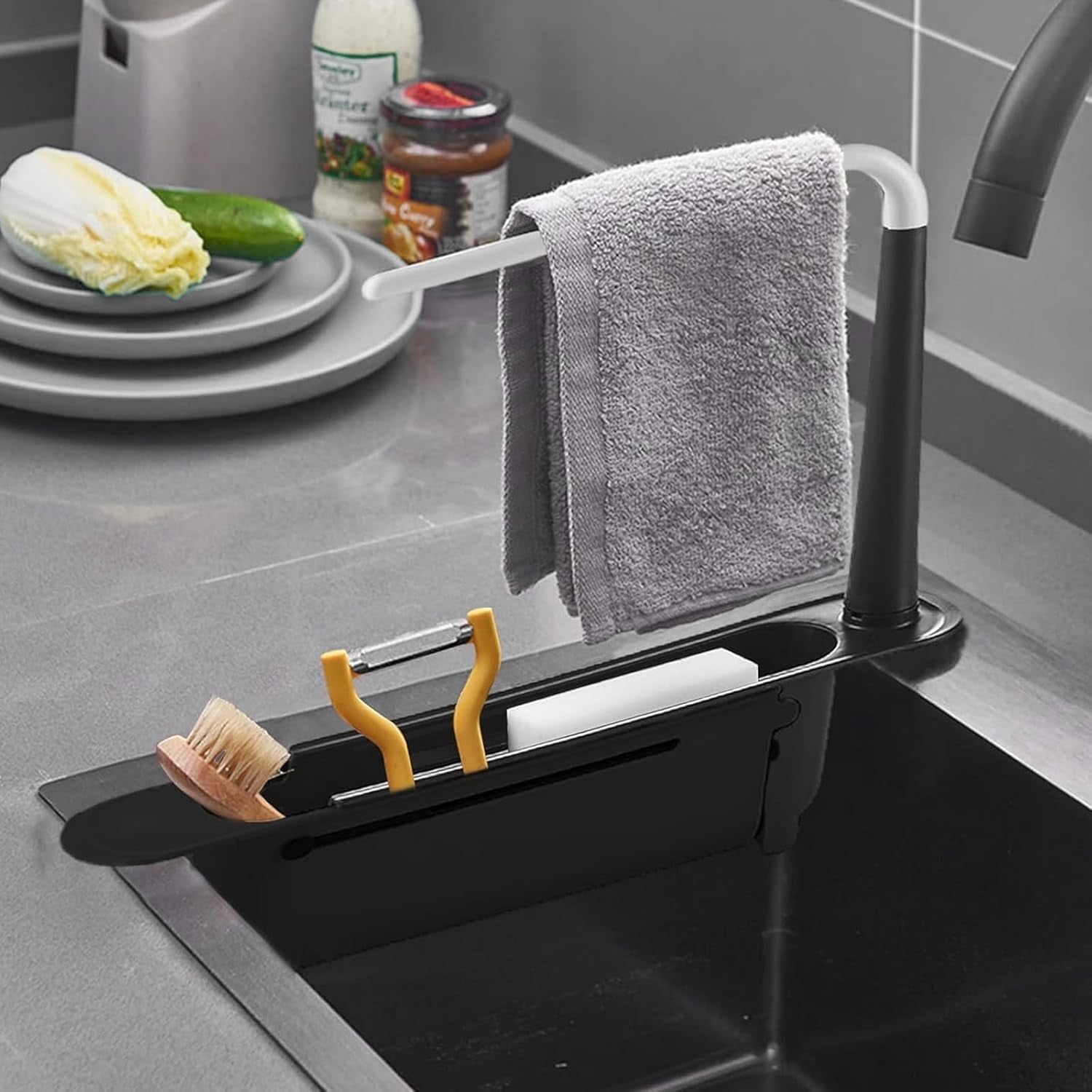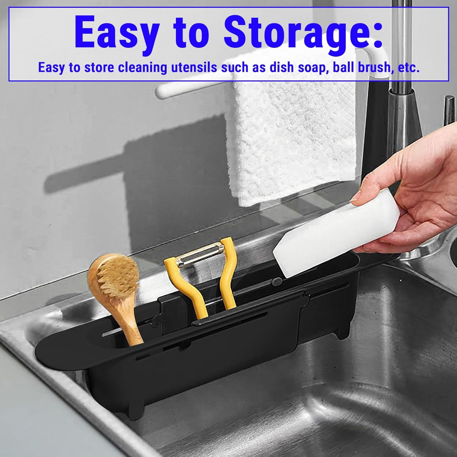 Telescopic Sink Storage Rack | Retractable Sink Drainer with Sponge & Soap Holder, Expandable Kitchen Brush Organizer