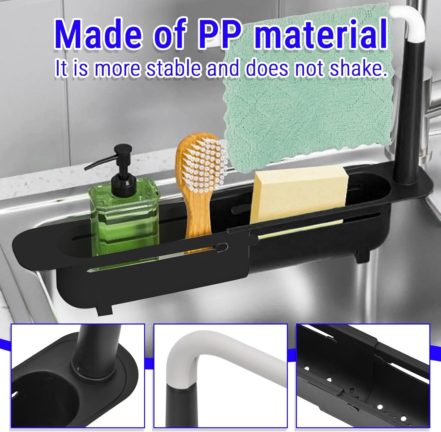 ✨【No-Drill Installation】Easy setup in just 3 seconds—place it under the faucet or on the countertop. No drilling required, and it’s easy to clean! ✨【Adjustable Length】This extendable sink organizer rack with an openwork design fits sponges, brushes, dishcloths, and more, with freely adjustable length for customizable storage. ✨【Ventilated Quick-Dry】The upgraded bottom features evenly spaced holes that promote airflow, ensuring the basket dries quickly and stays clean and dry. ✨【All-in-One Storage】A kitchen essential that neatly stores cleaning brushes, sponges, and detergents, keeping your countertop organized and tidy. ✨【Premium Material】Made from durable, waterproof, rust-resistant, and warp-proof material, this versatile organizer serves as a sponge rack, draining basket, or soap dish.
