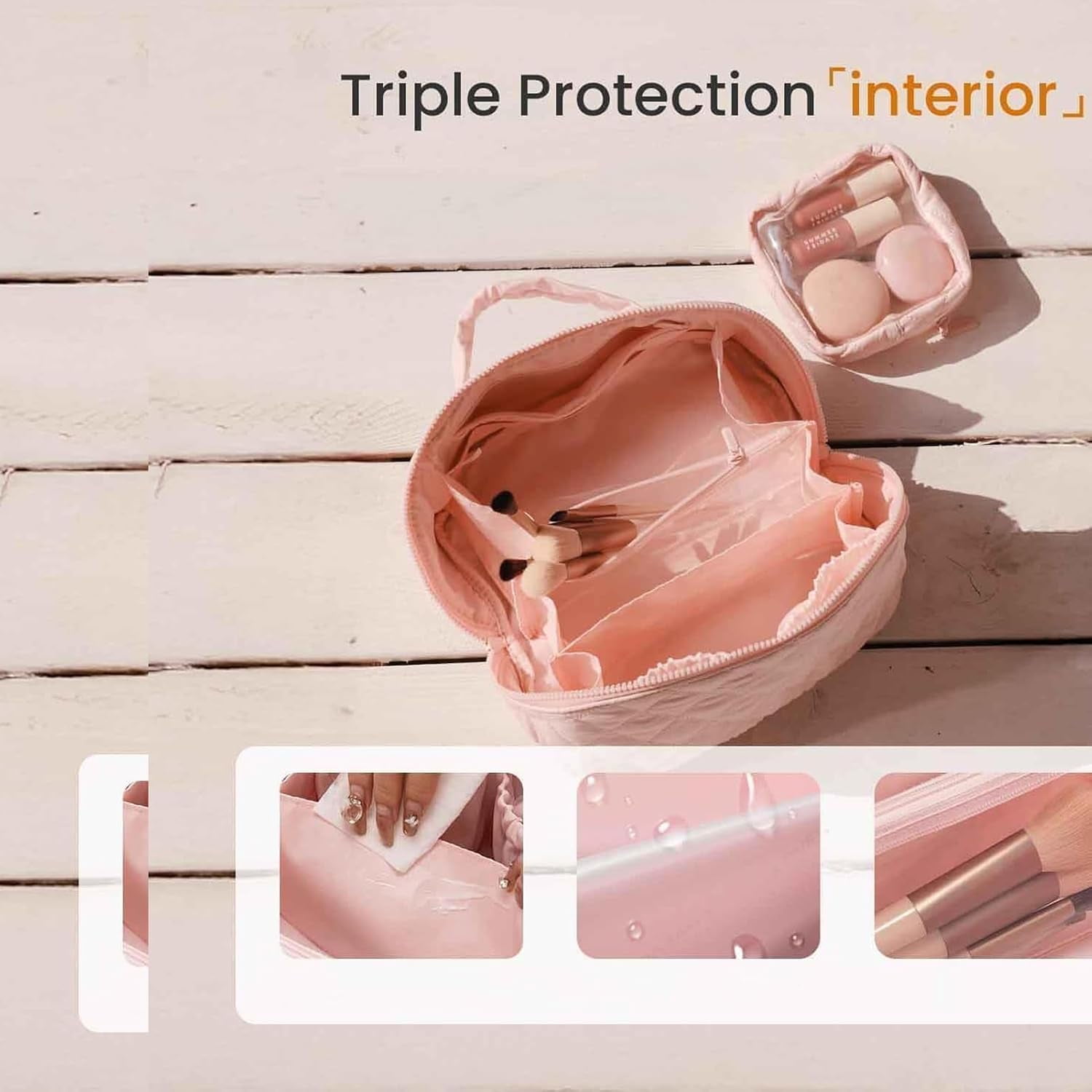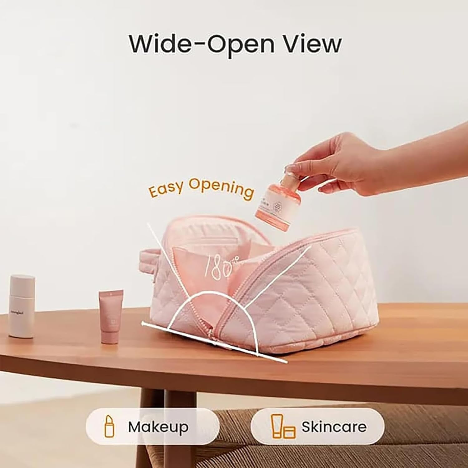 Travel Makeup Bag for Woman, 2026 New Lay-Flat Cosmetic Organizer with 5 Dedicated Pockets, Water-Resistant & Leak-Proof Toiletry Bag for Travel and Daily Use