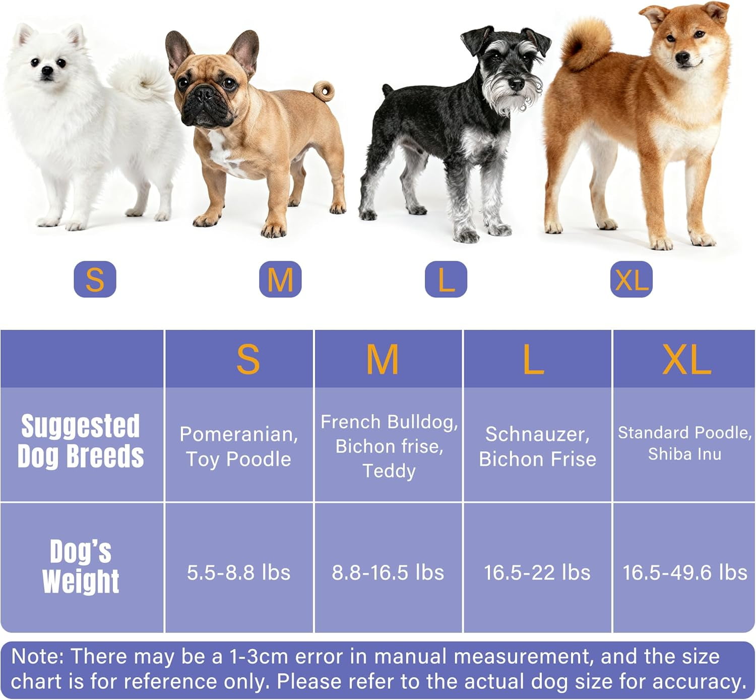 🎁 【For Small & Medium Dogs】Specially sized for small to medium dog breeds. Please measure your pet’s paws and refer to the size chart before purchasing to ensure a proper fit. 🎁 【Adjustable & Reflective Suspenders】Feature three adjustable buckles on the back straps for a secure, customized fit. Reflective strips on the straps enhance visibility and safety during nighttime walks. 🎁 【One-Piece Secure Design】The seamless, one-piece boot construction prevents the boots from slipping off during active play, running, or walking, ensuring they stay on in various outdoor conditions. 🎁 【Waterproof & Anti-Slip Soles】Made with waterproof rubber material to keep paws dry in rain and snow. The textured, non-slip soles provide excellent grip on wet floors, grass, and hard surfaces. 🎁 【Multi-Purpose Paw Protection】Protects paws from mud, moisture, debris, and rough terrain. The open hind leg design allows for natural movement and does not interfere with your dog’s daily activities.