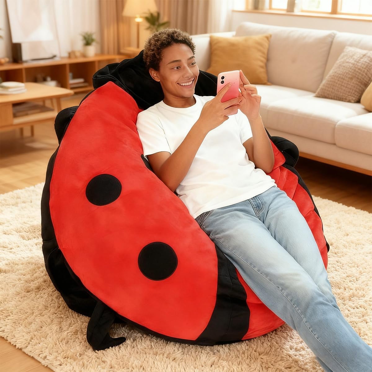 🎁【Soft & Cuddly Plush Material】Crafted from premium, ultra-soft crystal fleece with fluffy PP cotton filling, this giant ladybug pillow provides a luxurious, huggable, and warm experience for both children and adults. 🎁【Unique Wearable Costume Design】Features an innovative wearable design with armholes, transforming the user into a cute ladybug character. Perfect for imaginative play, costume parties, photo props, or cozy lounging. 🎁【Versatile Home Decor & Accent】Adds a playful and charming touch to any room as decorative decor for sofas, beds, or reading nooks, creating a fun and whimsical atmosphere in living spaces and bedrooms. 🎁【Generous Oversized Proportions】Available in large sizes (e.g., 60cm/100cm), offering substantial, comforting support for hugging, lounging, floor seating, or use as a unique body pillow during rest or play. 🎁【Durable & Well-Crafted Construction】Built with expert craftsmanship, reinforced stitching, and high-quality materials to ensure long-lasting durability, shape retention, and maintained softness through repeated use and washes.
