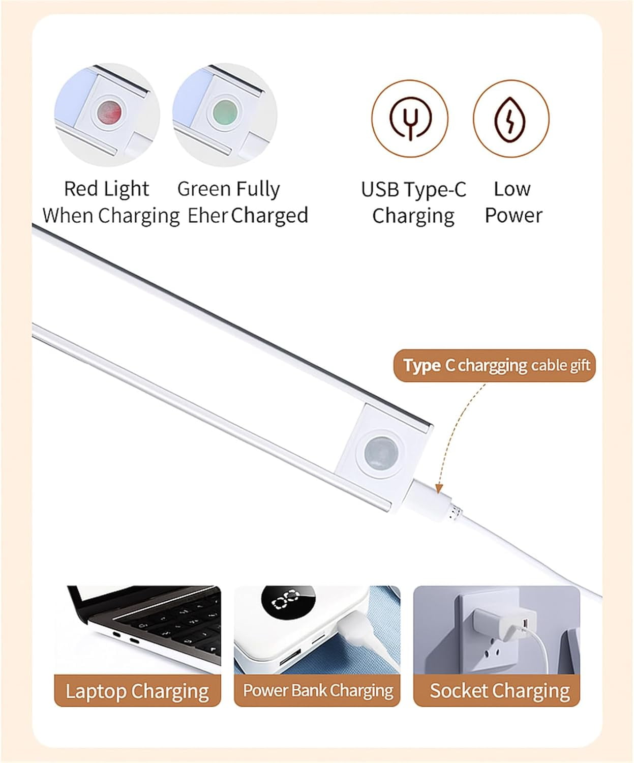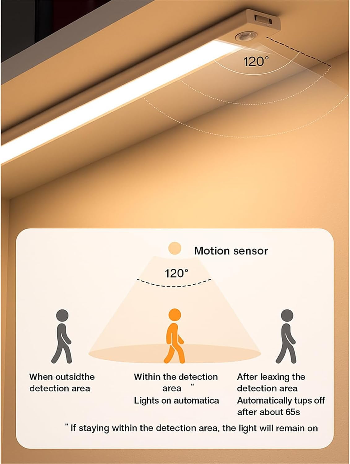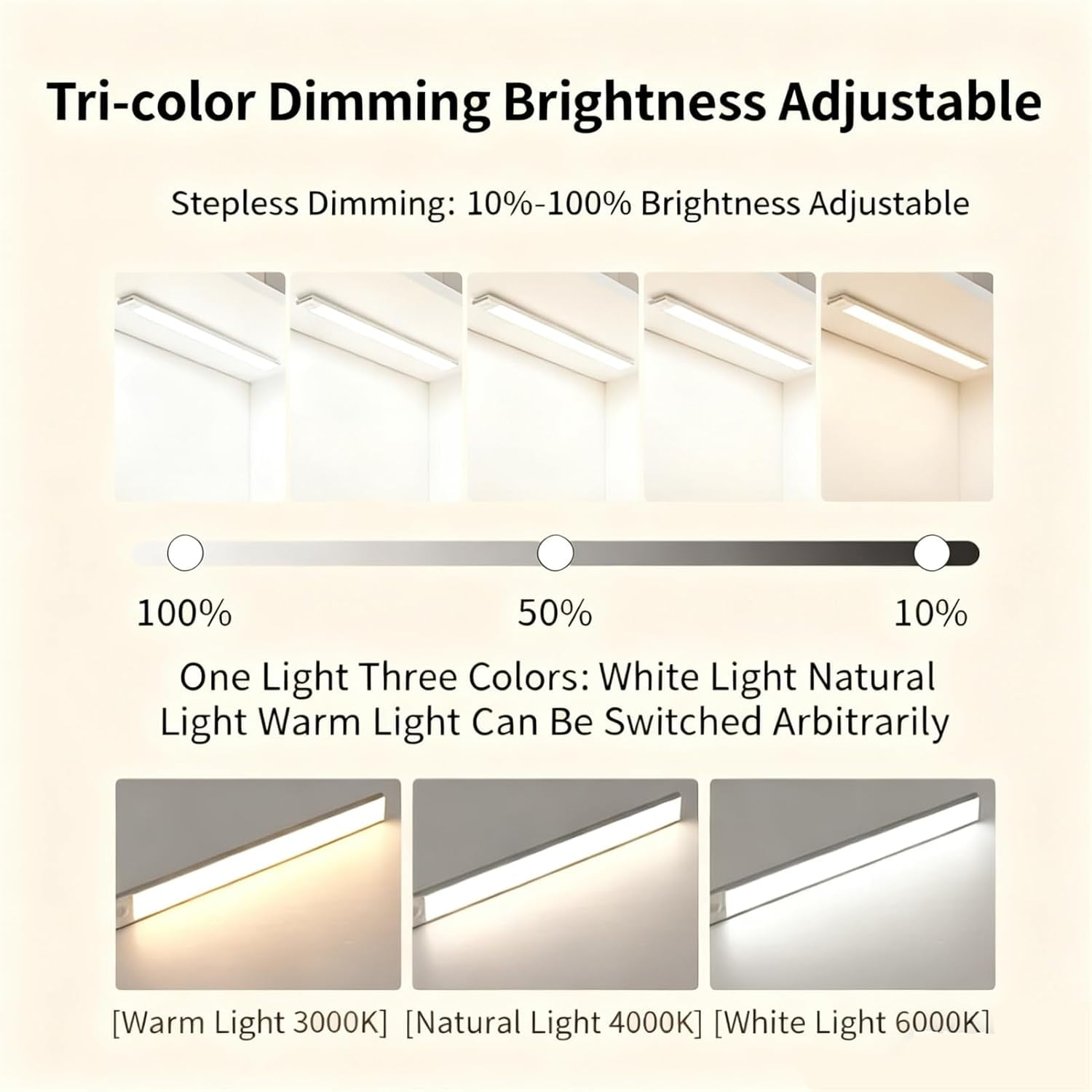 🎁【Motion Activated】Detects movement within 10ft to turn on instantly. Auto-offs after 20s of no motion for energy-saving, hands-free convenience. 🎁【3 Colors & Dimmable】Switch between warm, neutral, and cool white. Features stepless dimming to customize brightness for cooking or night lighting. 🎁【Glare-Free Light】Soft, uniform light protects eyes from harsh glare. Provides gentle, natural illumination ideal for reading or under-cabinet work. 🎁【Easy Installation】Strong magnetic base with adhesive sticks anywhere tool-free. Rechargeable battery offers long-lasting, wire-free convenience. 🎁【Widely Applicable】Wireless and compact design fits anywhere. Perfect for brightening closets, kitchens, pantries, stairways, hallways, and drawers.