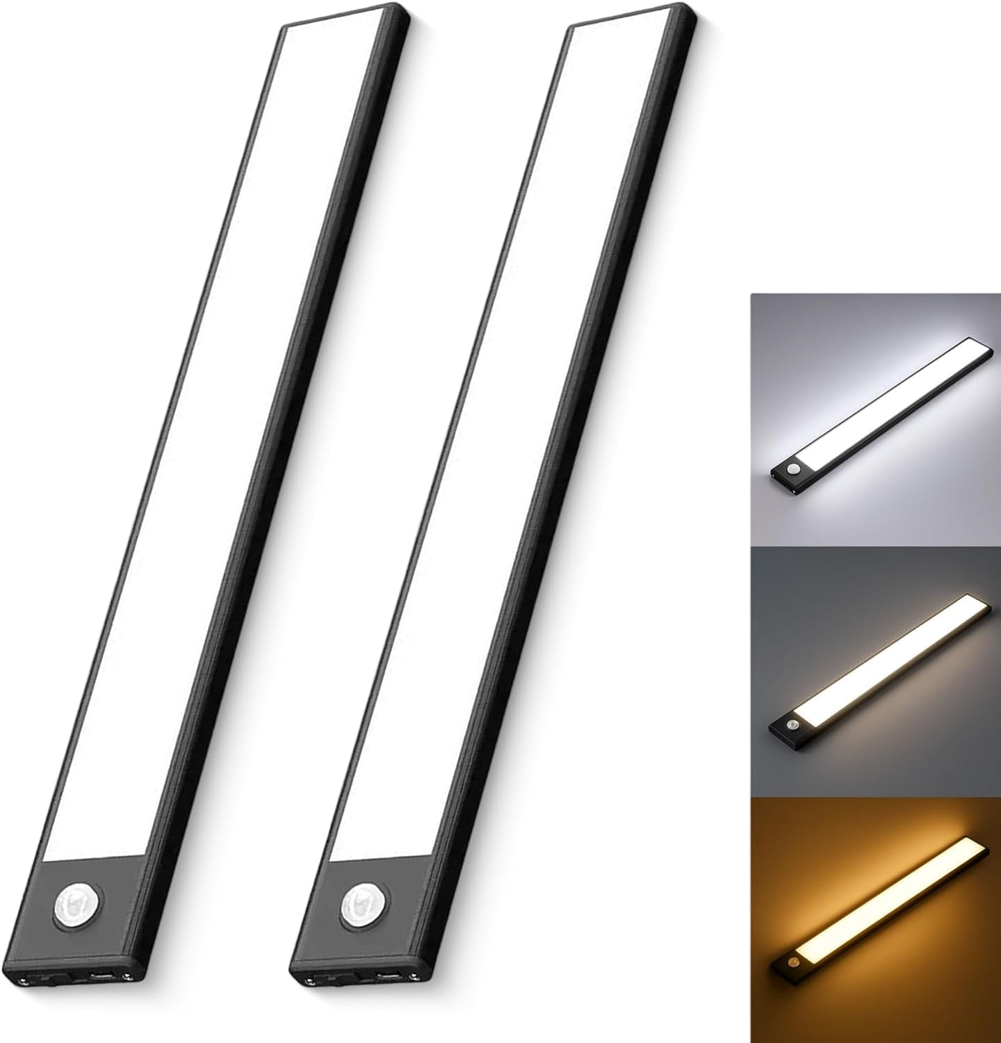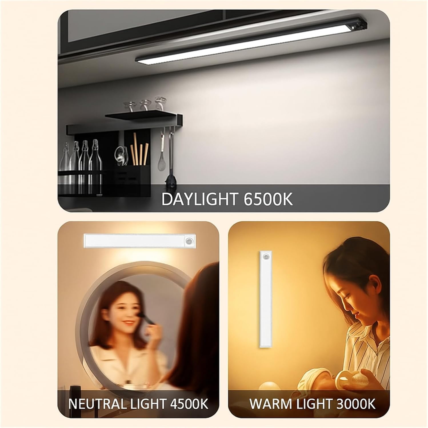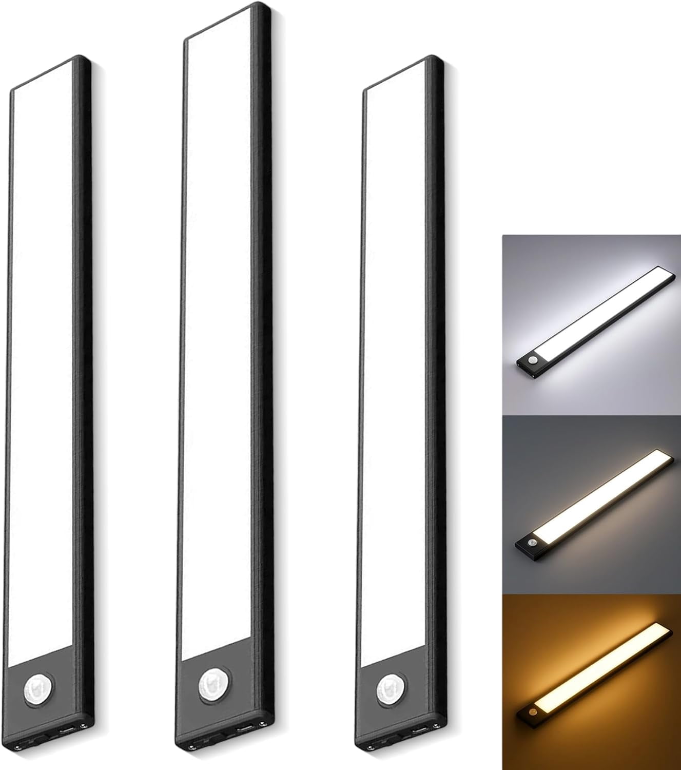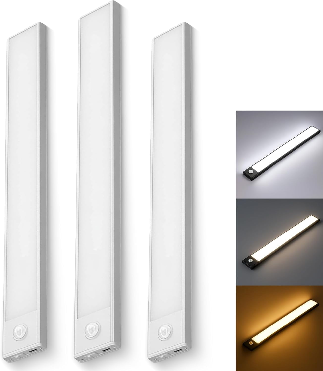 Wireless Motion Sensor LED Under Cabinet Lighting, Rechargeable Magnetic Closet Light, Dimmable 3-Color Modes, Tool-Free Installation