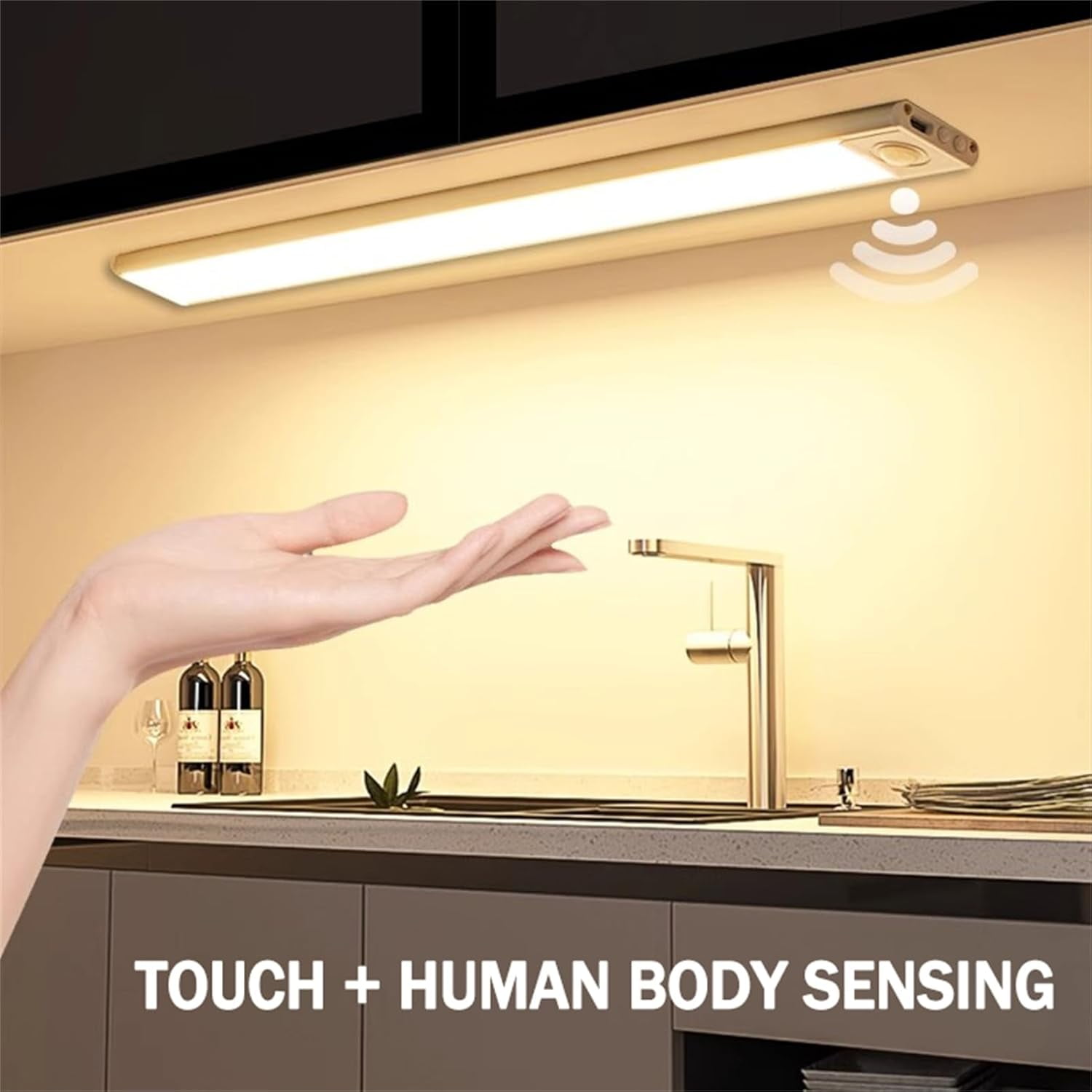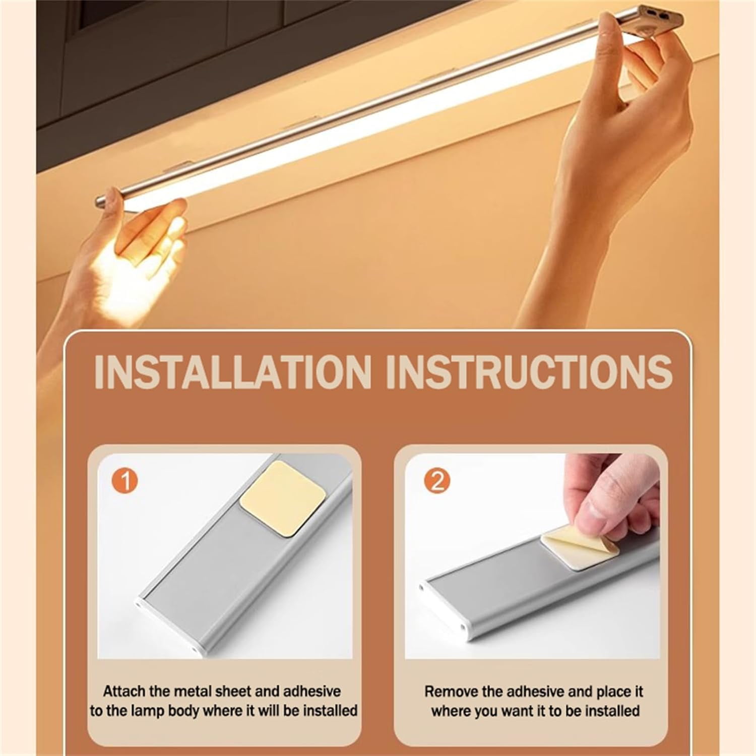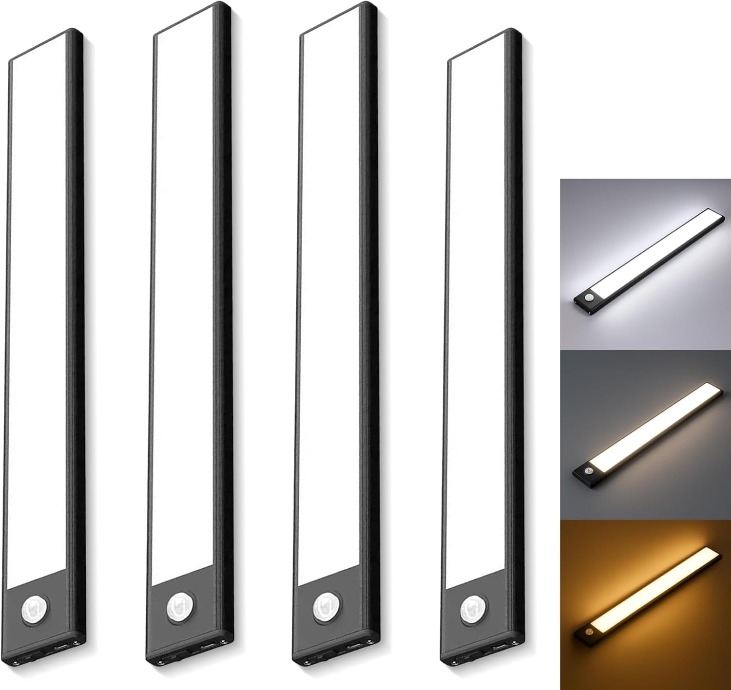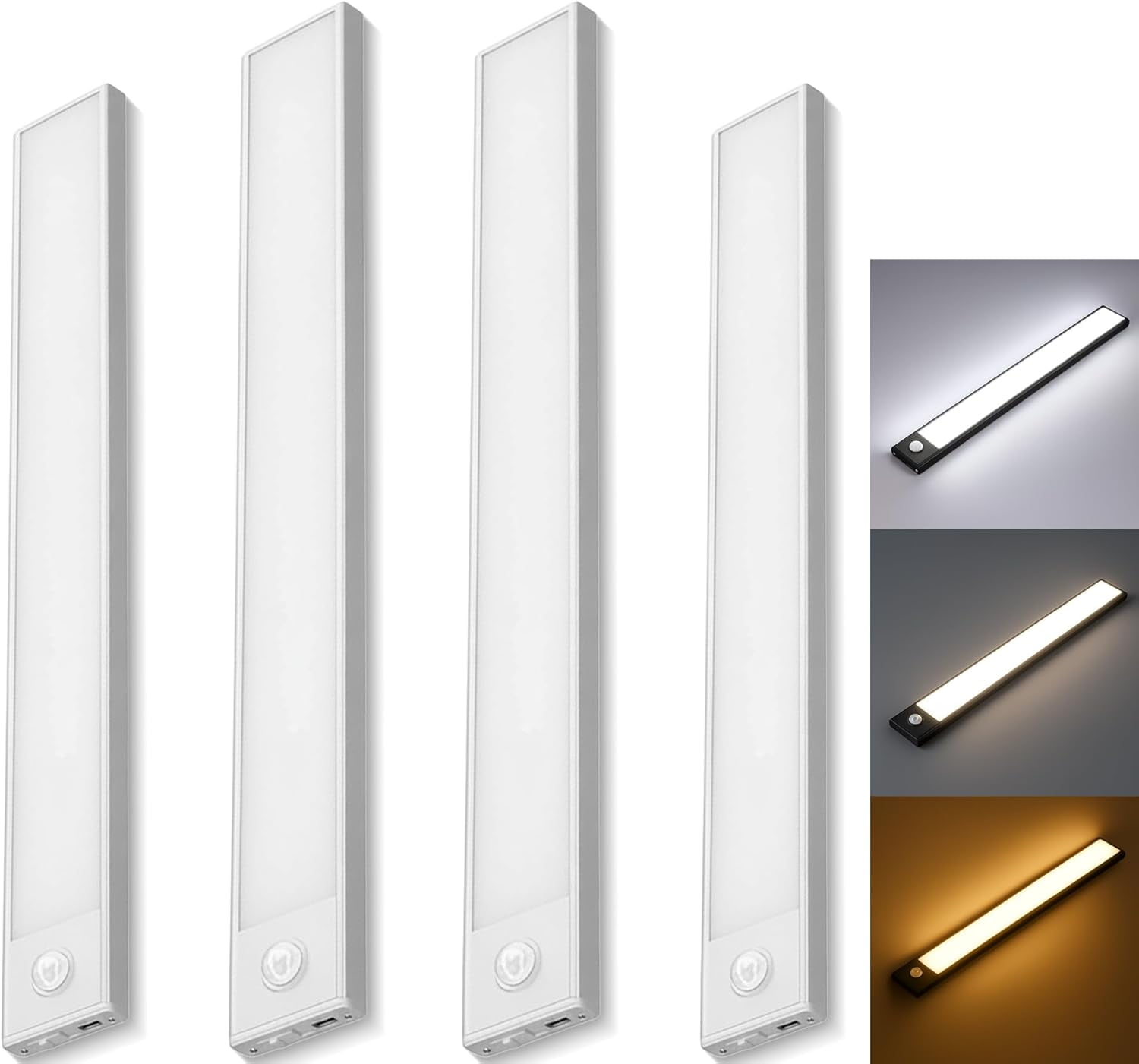 Wireless Motion Sensor LED Under Cabinet Lighting, Rechargeable Magnetic Closet Light, Dimmable 3-Color Modes, Tool-Free Installation